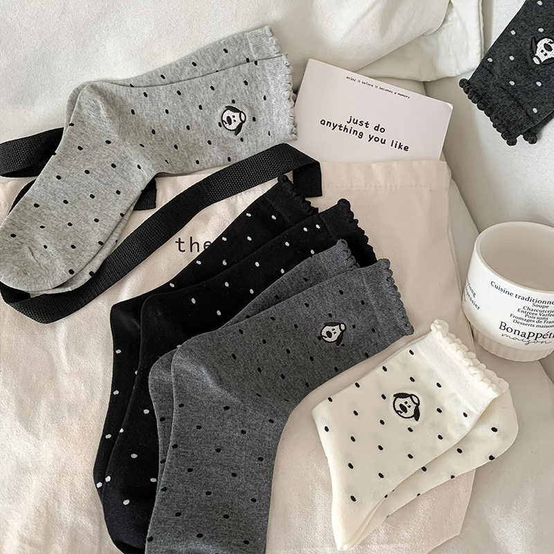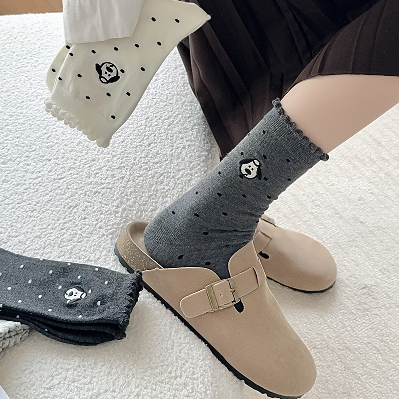 2024년 신상 회색 양말 여성용 물방울 무늬 비행기 강아지 만화 통기성 여성용 면 양말 중간 길이 양말 땀 흡수 통기성
