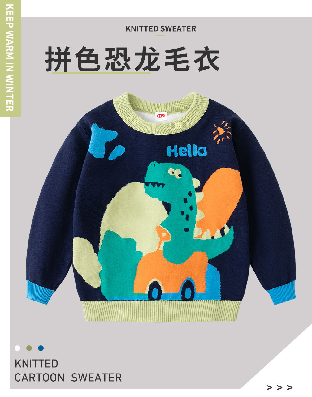 어린이 스웨터 봄과 가을 소년의 유행 공룡 스웨터 대형 어린이 만화 따뜻한 스웨터 트렌디 헤어스토어 가기