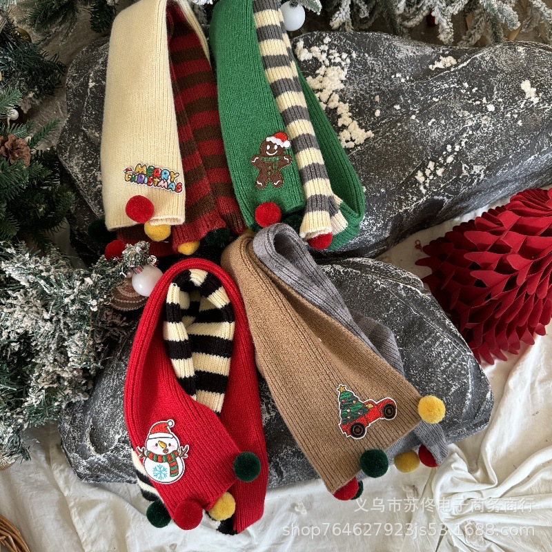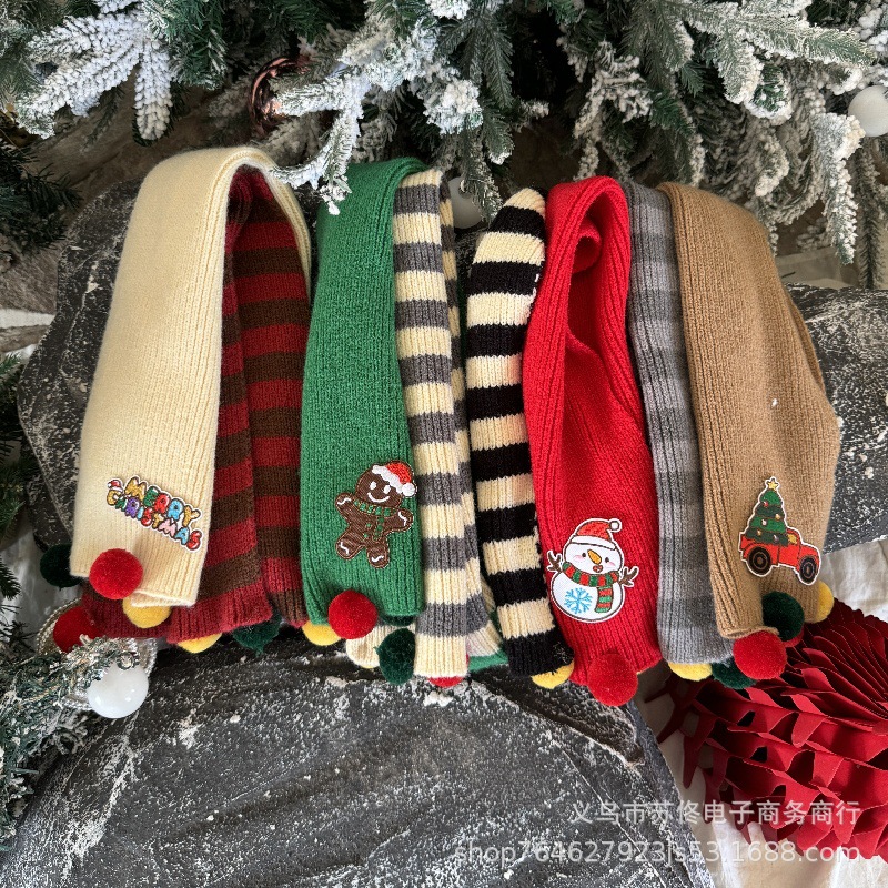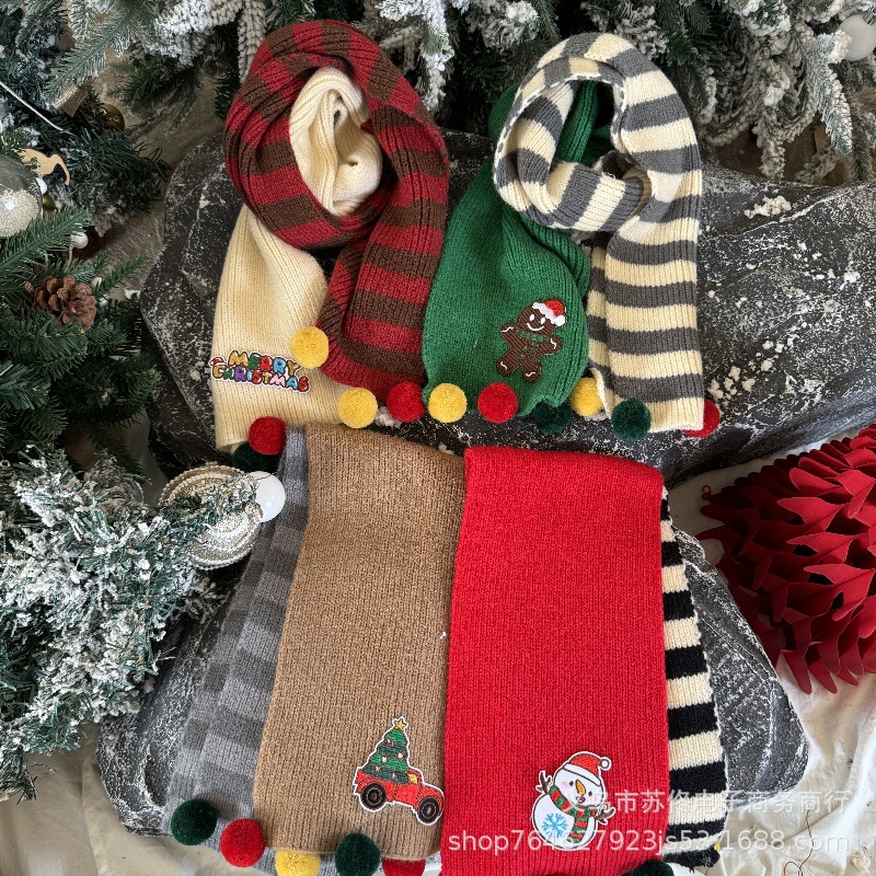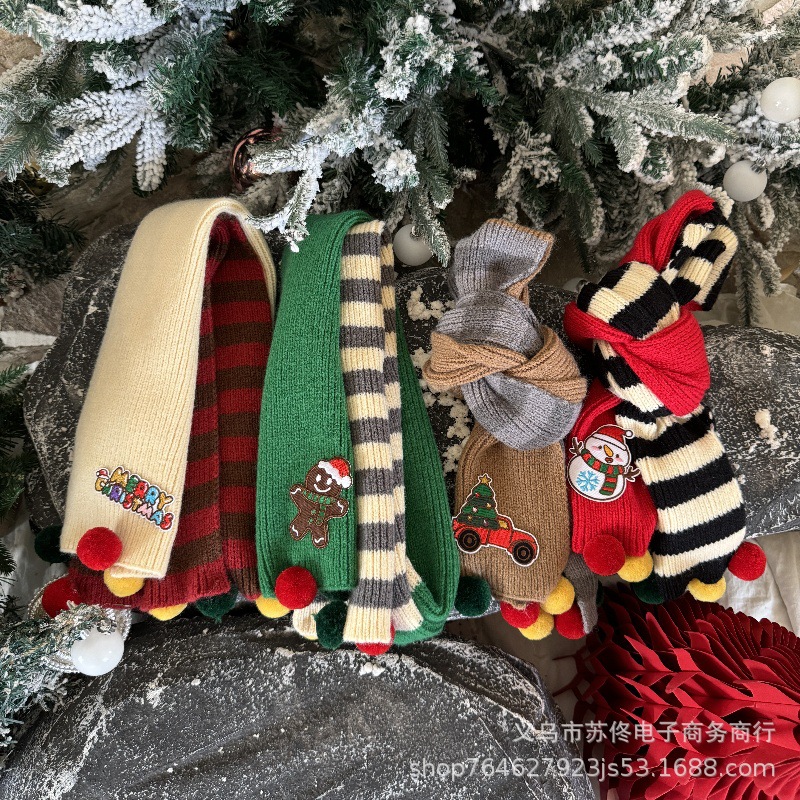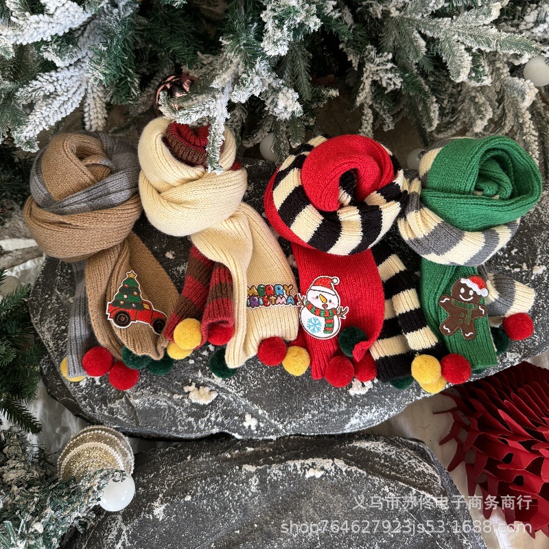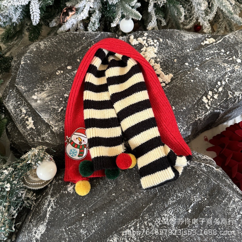 소년 소녀를위한 어린이 크리스마스 스카프 겨울 새로운 양면 수평 줄무늬 니트 긴 스카프 따뜻한 스카프 패션스토어 가기