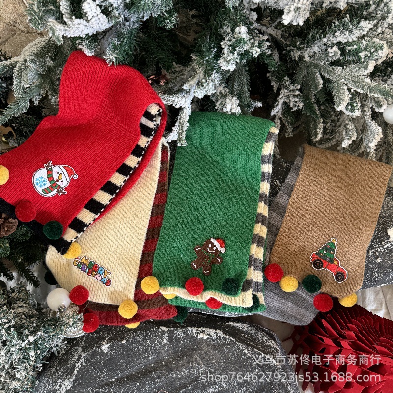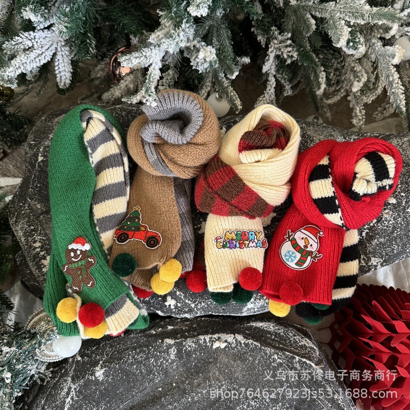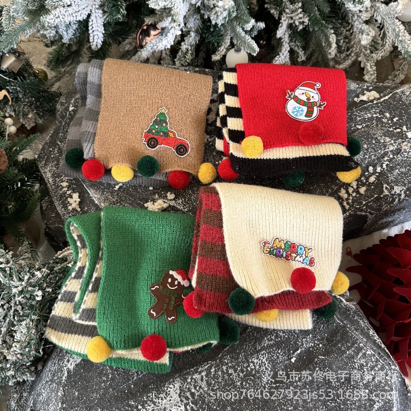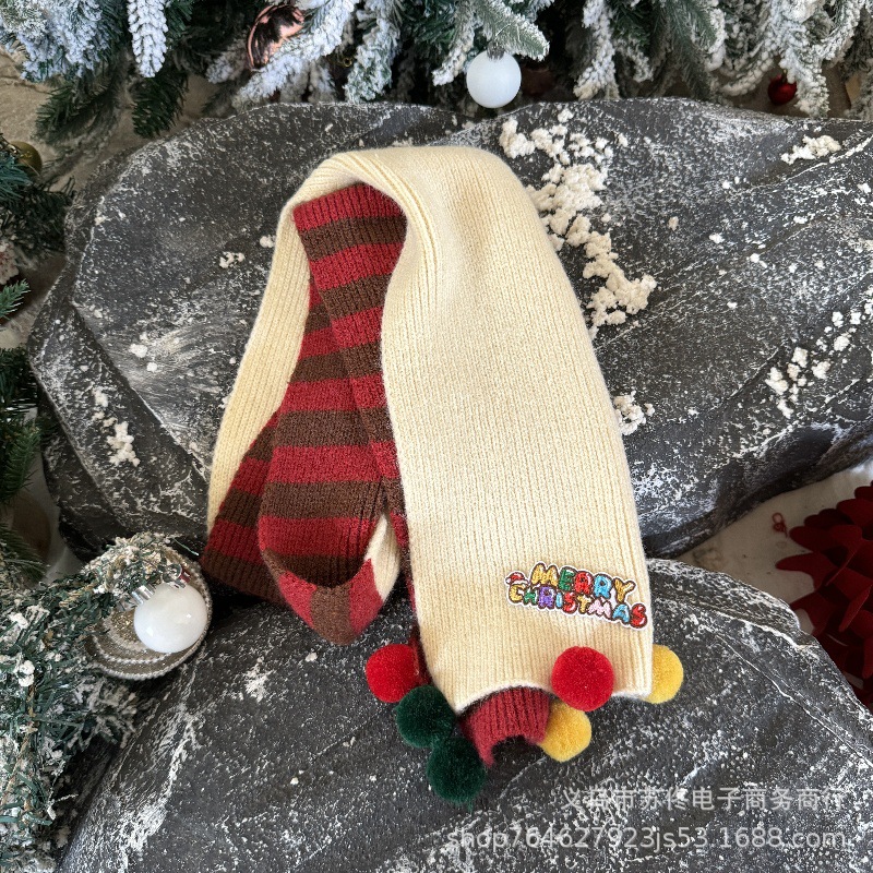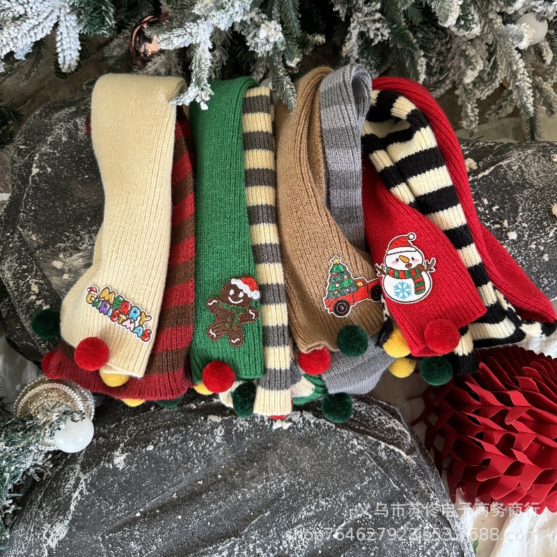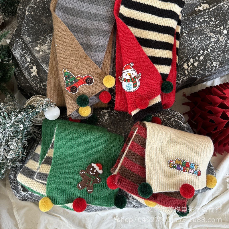 소년 소녀를위한 어린이 크리스마스 스카프 겨울 새로운 양면 수평 줄무늬 니트 긴 스카프 따뜻한 스카프 패션스토어 가기