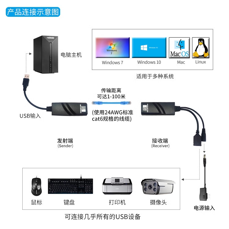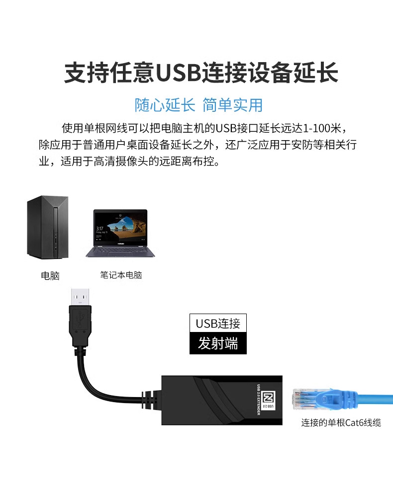 USB2.0 익스텐더 100 m USB/RJ45 확장 100 m 마우스 키보드 카메라 100 m 확장스토어 가기