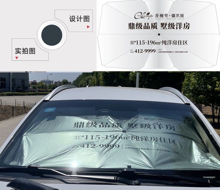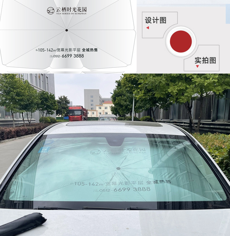 중간 막대 차양 태양 방패가없는 자동차 차양 우산 drawstring 유리 섬유 차양 인쇄