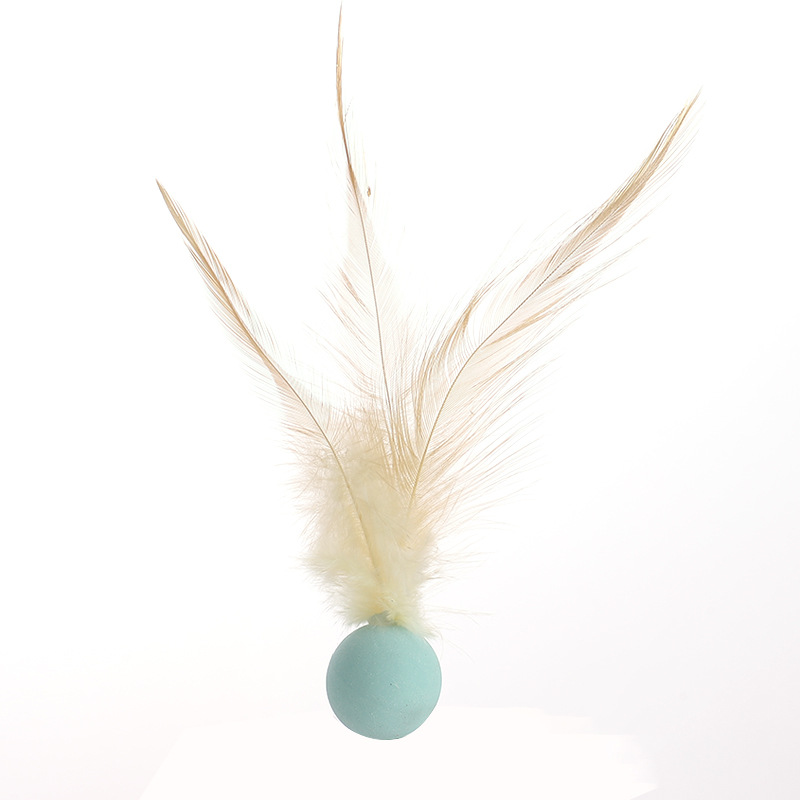국경 간 새로운 인터넷 축하 치킨 깃털 고무 공 깃털 던지기 고양이 장난감 셀프 하이 애완 동물 장난감스토어 가기