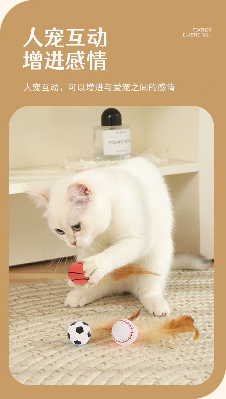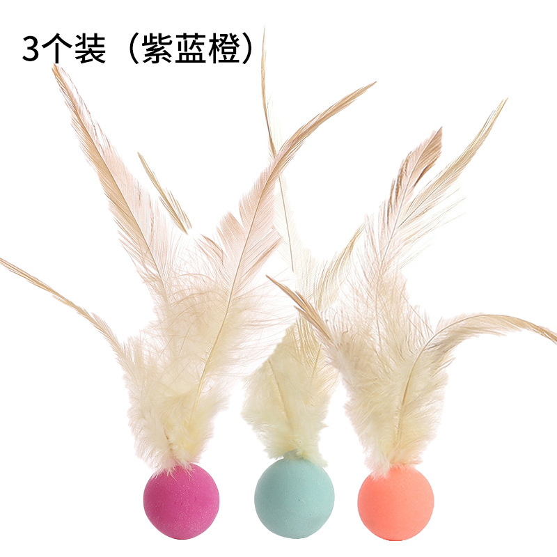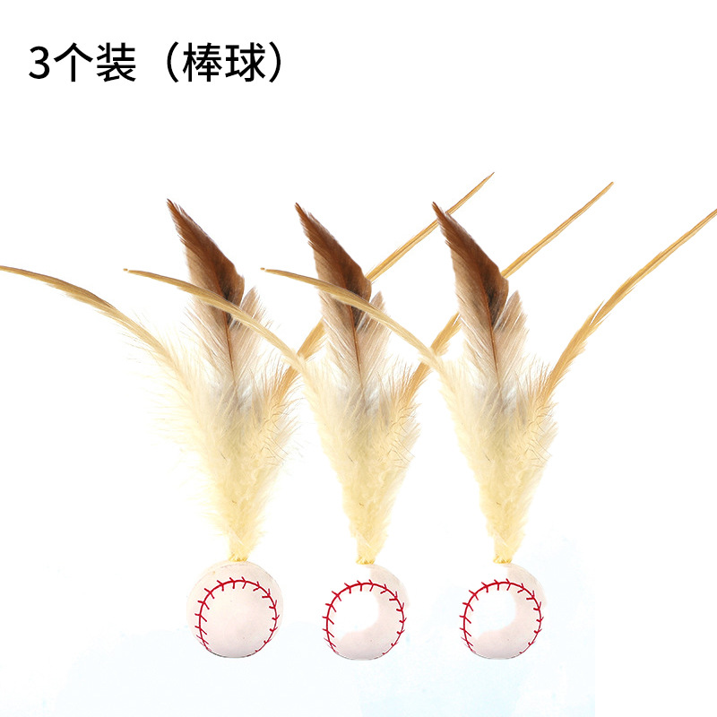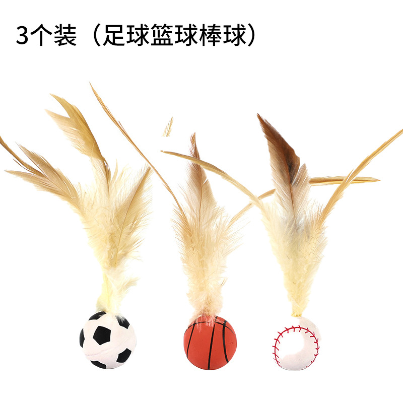 국경 간 새로운 인터넷 축하 치킨 깃털 고무 공 깃털 던지기 고양이 장난감 셀프 하이 애완 동물 장난감