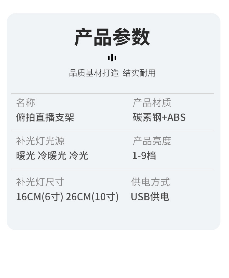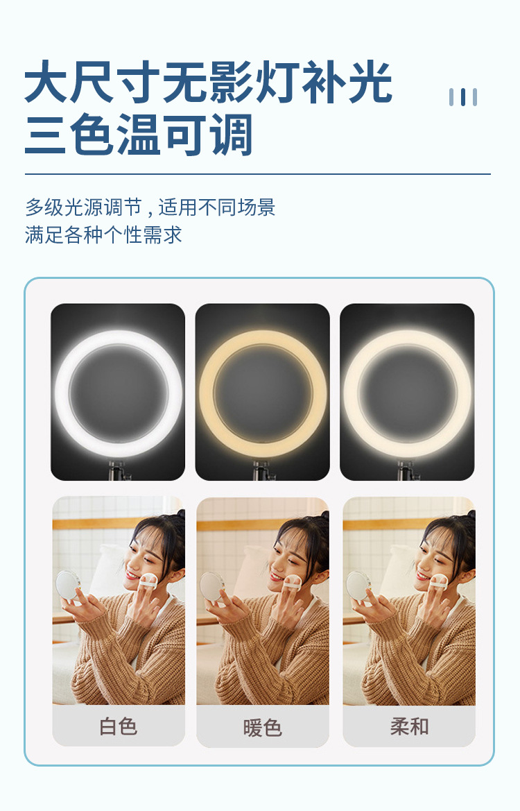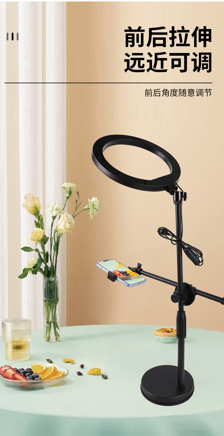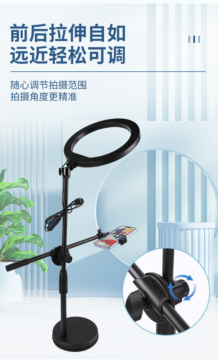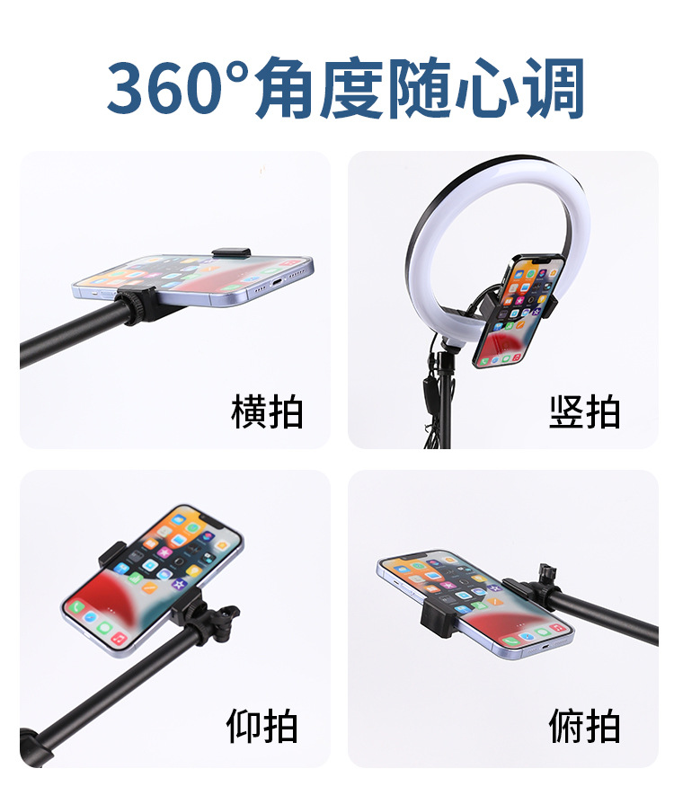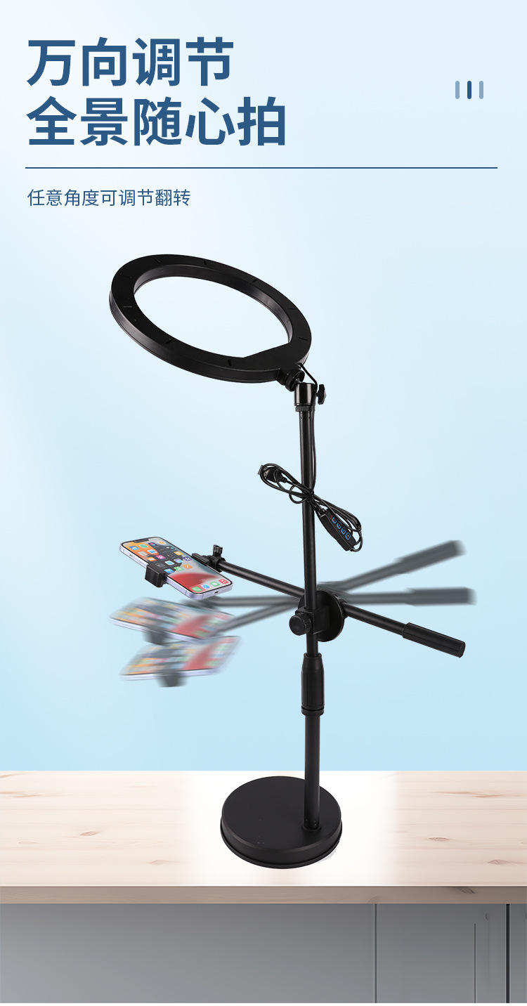 • 디스크 브래킷 + 10inch 라운드 필 라이트 + 한 단어 클립 + 팬/틸트 + 사진 블루투스