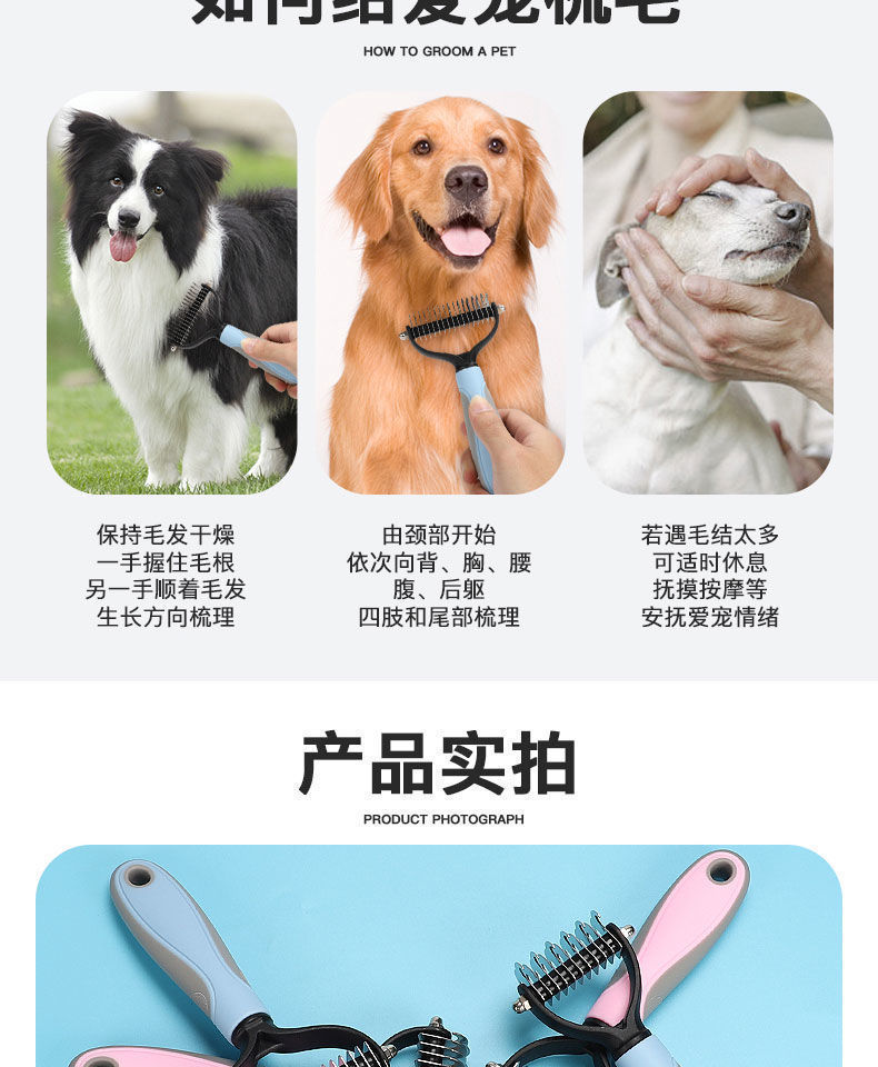 애완 동물 빗 양면 오픈 매듭 빗 마사지 빗 청소 아름다움 고양이 빗 개 애완 동물 빗 애완 동물 용품 빗스토어 가기