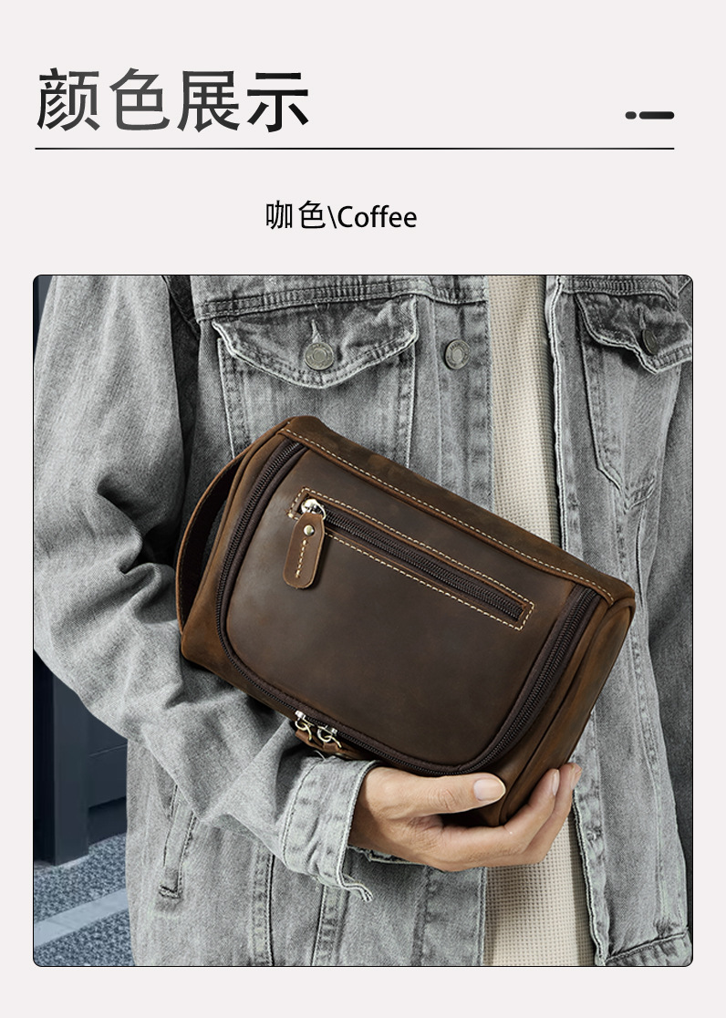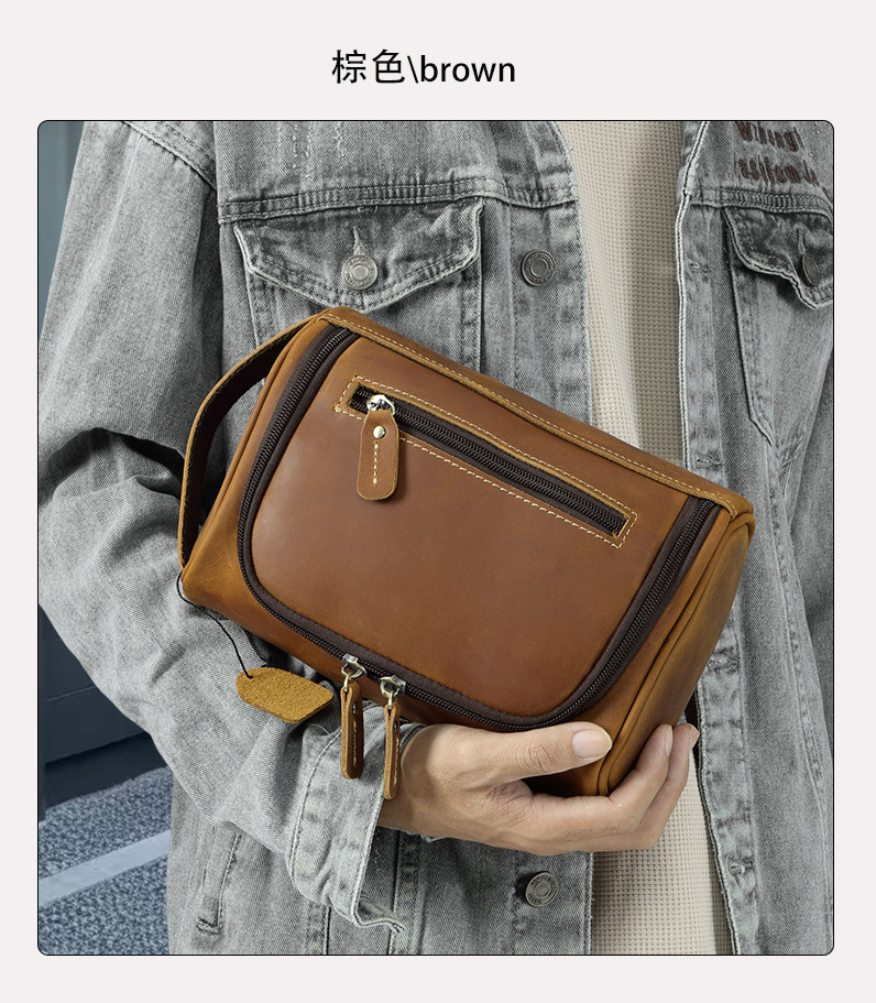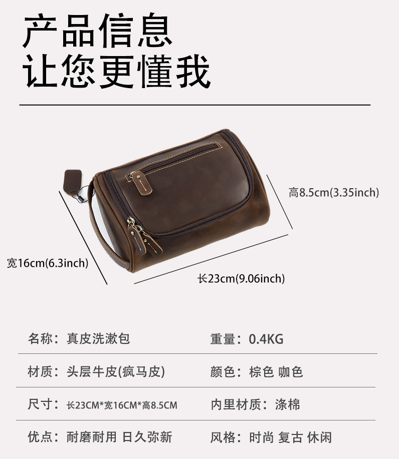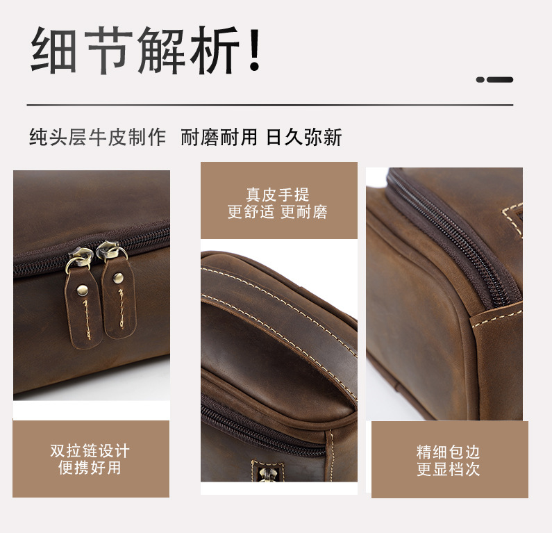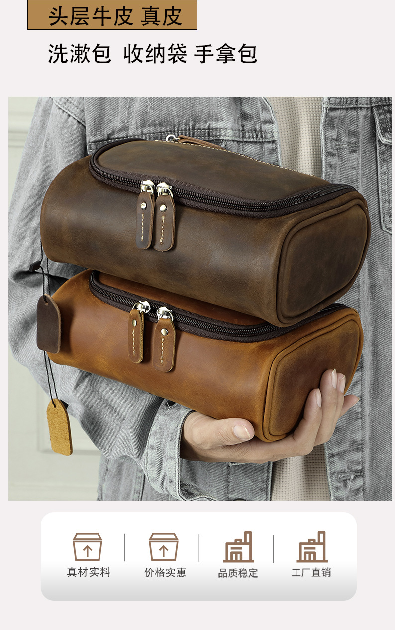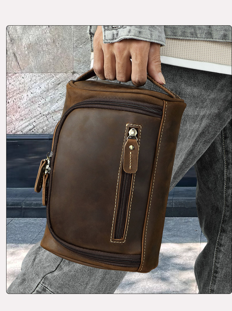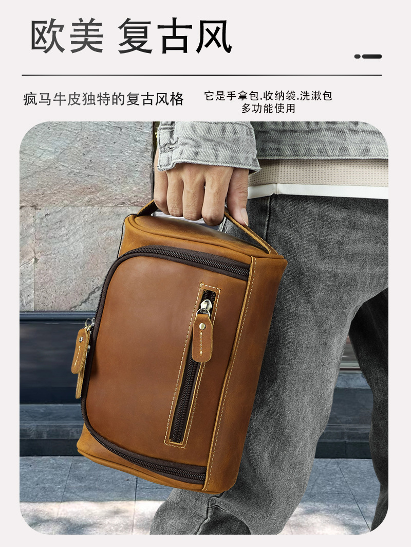 정품 가죽 화장실 가방 핸드 백 탑 레이어 소 가죽 보관 가방 남성 핸드 가방 유럽과 미국의 빈티지 카우보이 가방스토어 가기