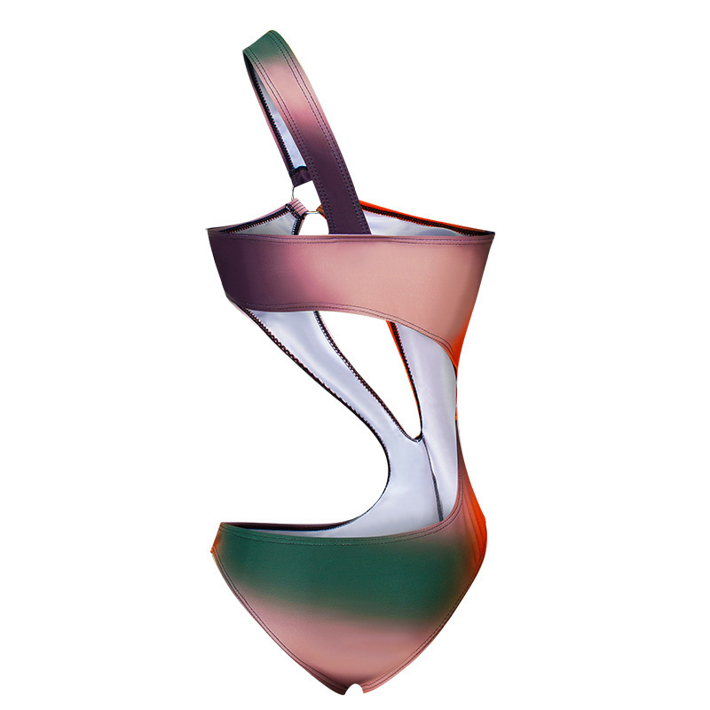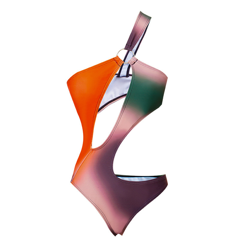 새로운 대외 무역 수영복 섹시한 금속 링 연결 어깨 비대칭 버전 유럽과 미국의 원피스 수영 비키니 도매스토어 가기