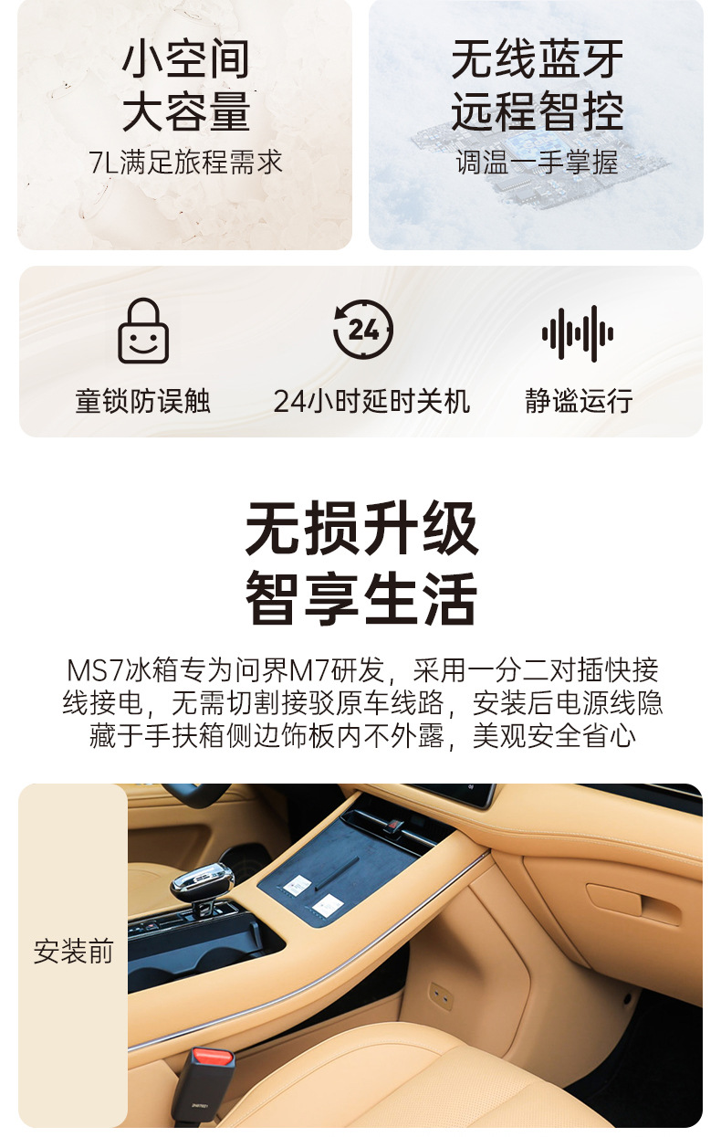 AITO 경계 M7 특수 자동차 냉장고 팔걸이 상자 비 파괴적인 수정 압축기 냉장 난방 7L 용량에 적합