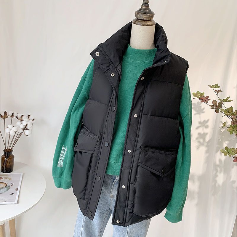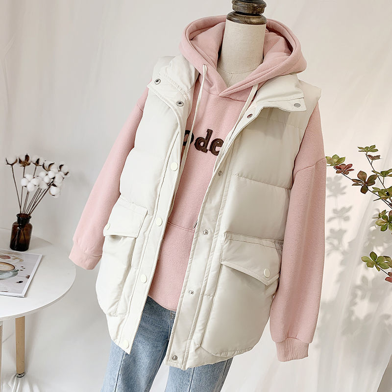 다운 코튼 조끼 2024 새로운 여성 한국 스타일 아우터 착용 코튼 패딩 재킷 외부 조끼 빵 코트 겨울