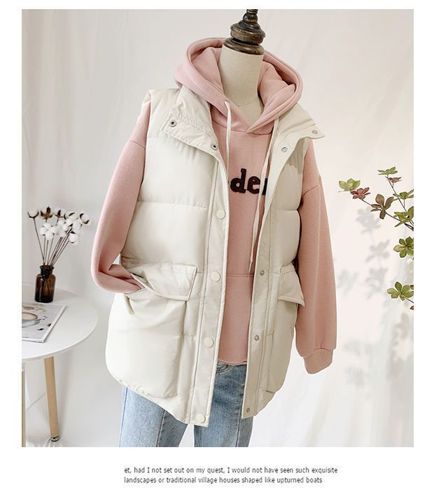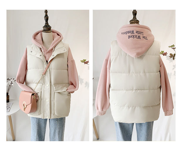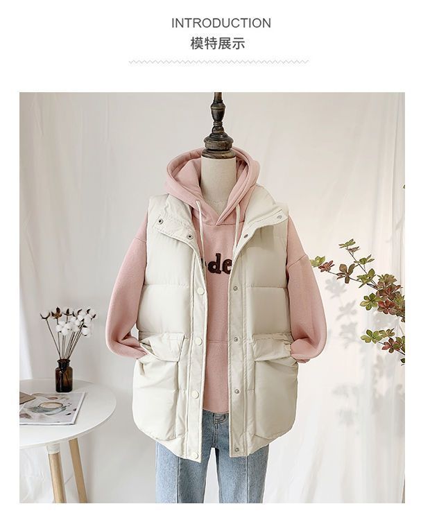 다운 코튼 조끼 2024 새로운 여성 한국 스타일 아우터 착용 코튼 패딩 재킷 외부 조끼 빵 코트 겨울스토어 가기