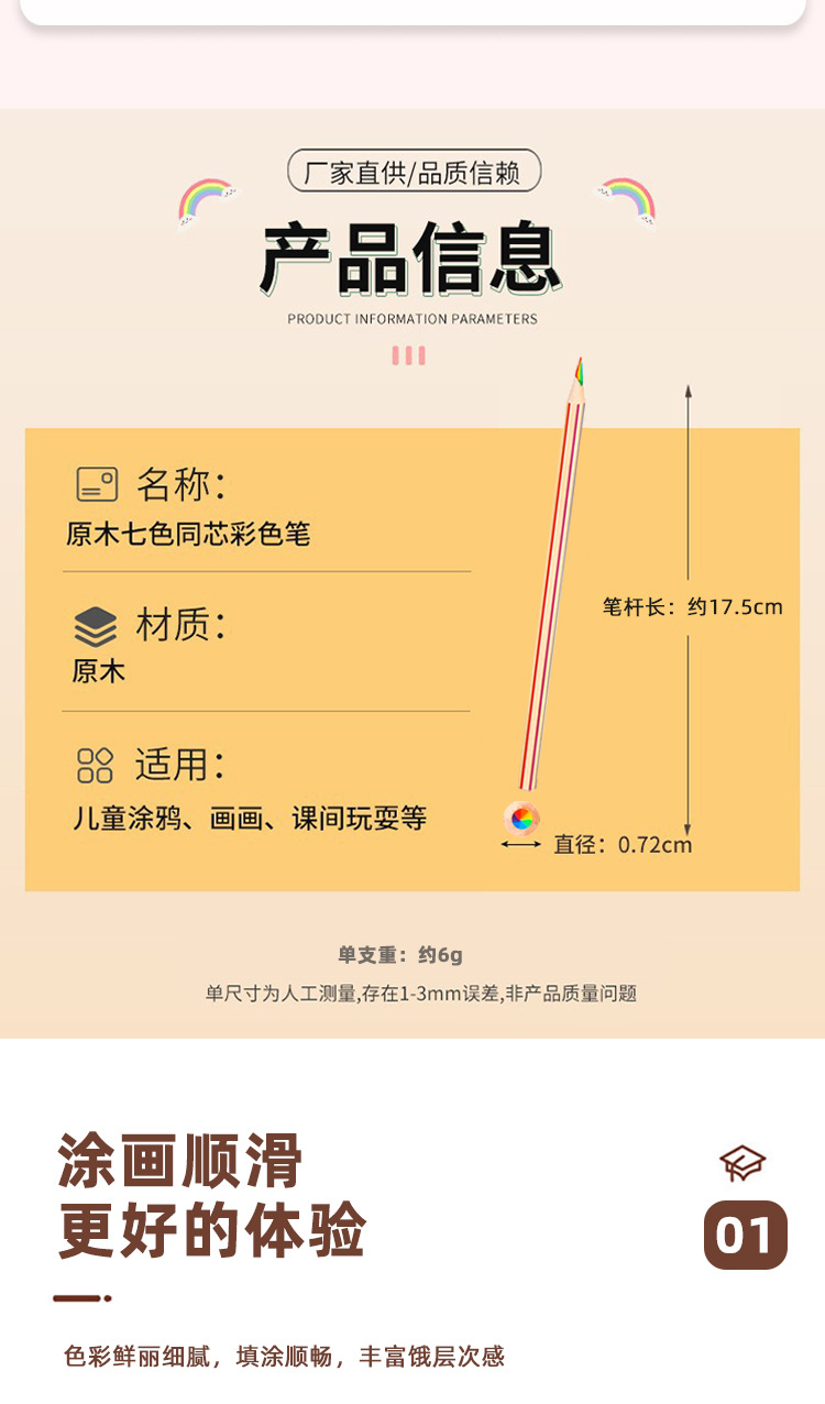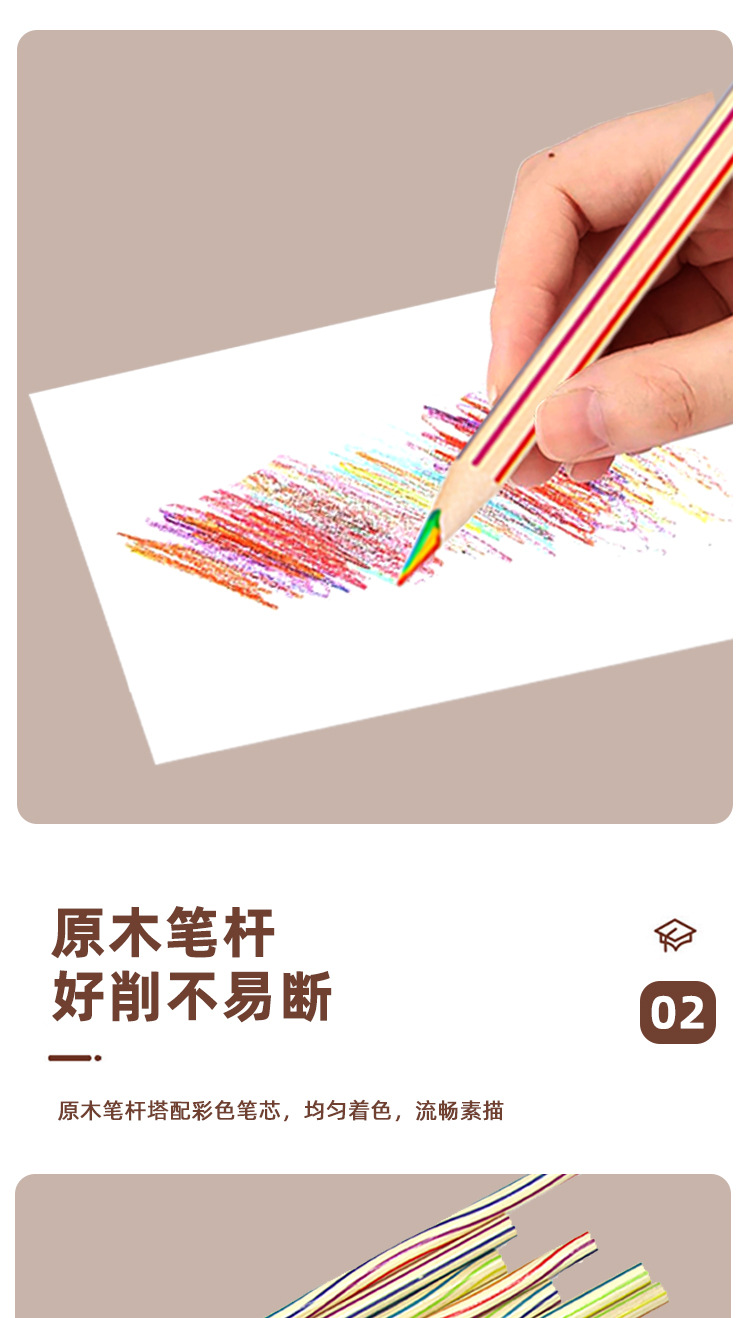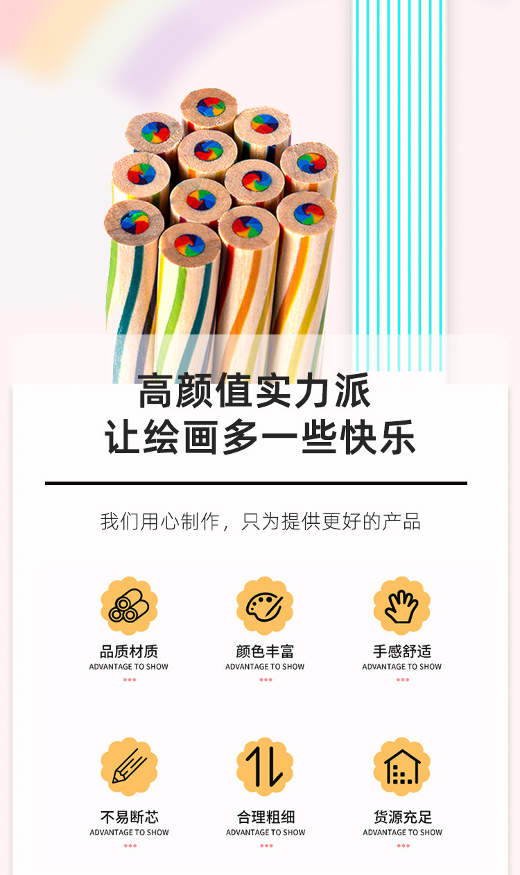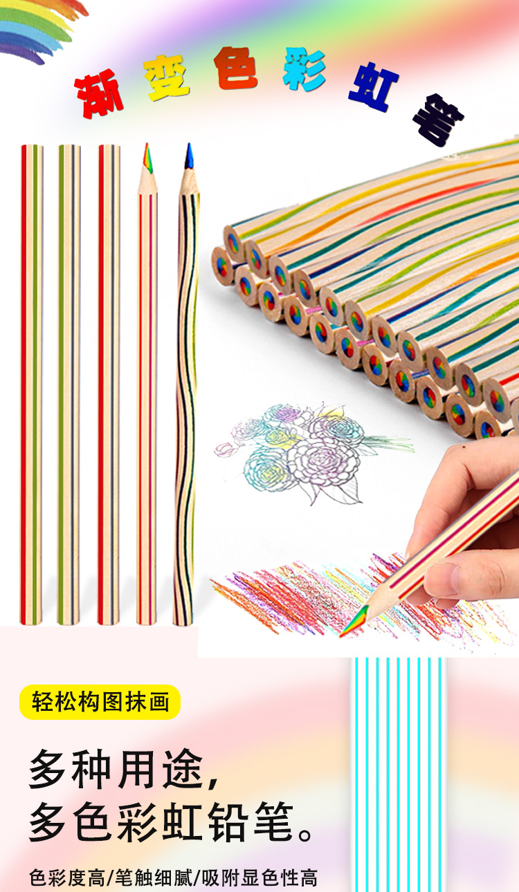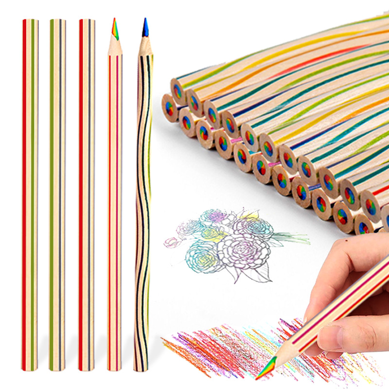 국경 간 폭발 7 색 코어 컬러 스트라이프 연필 유치원 학생들이 나무 색상 리드 학생 연필 그림