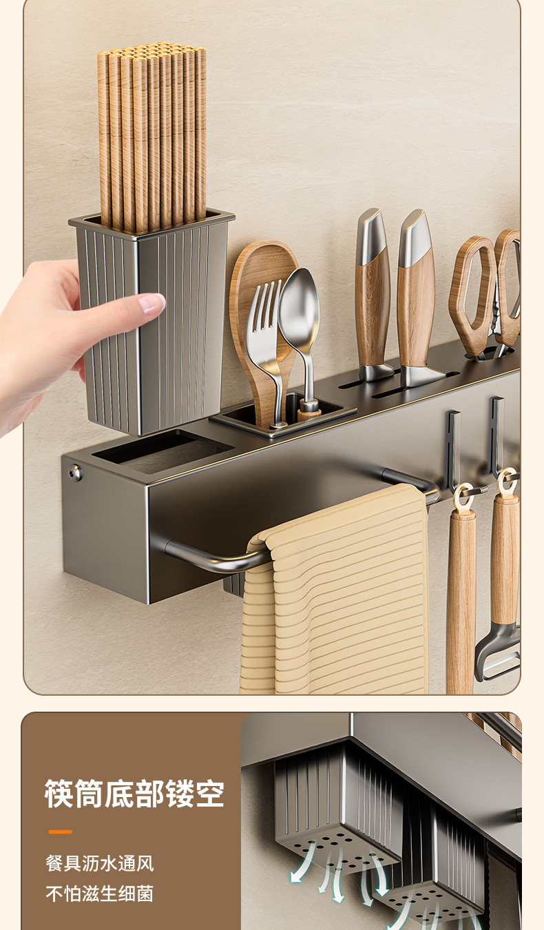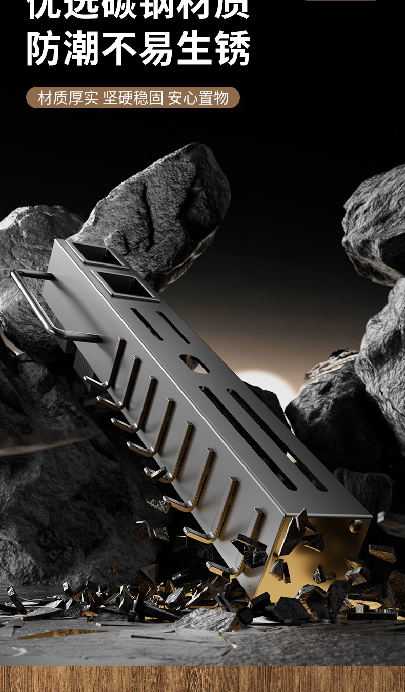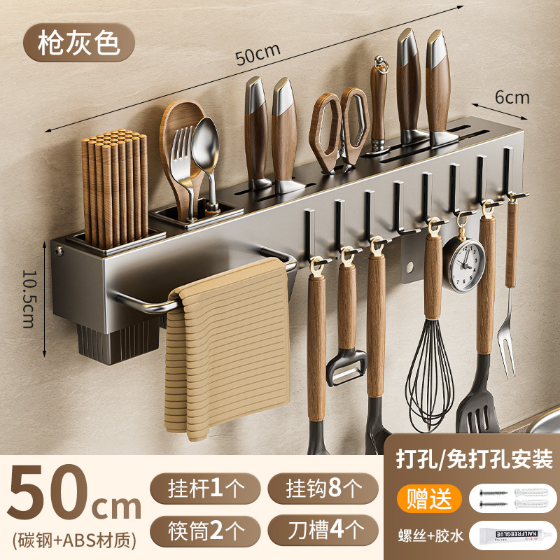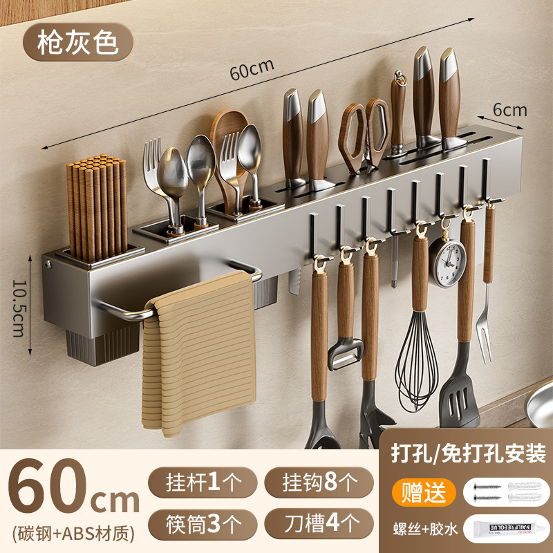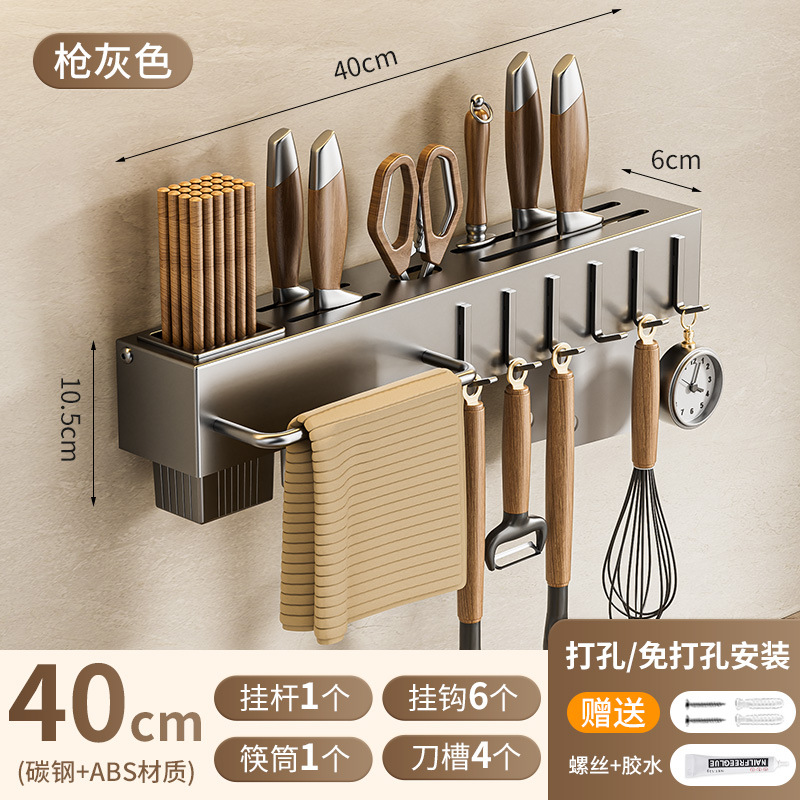 주방 수납 선반 칼꽂이 무타공 다기능 벽걸이 젓가락통 칼꽂이 후크형 젓가락 탄소강 수납 선반