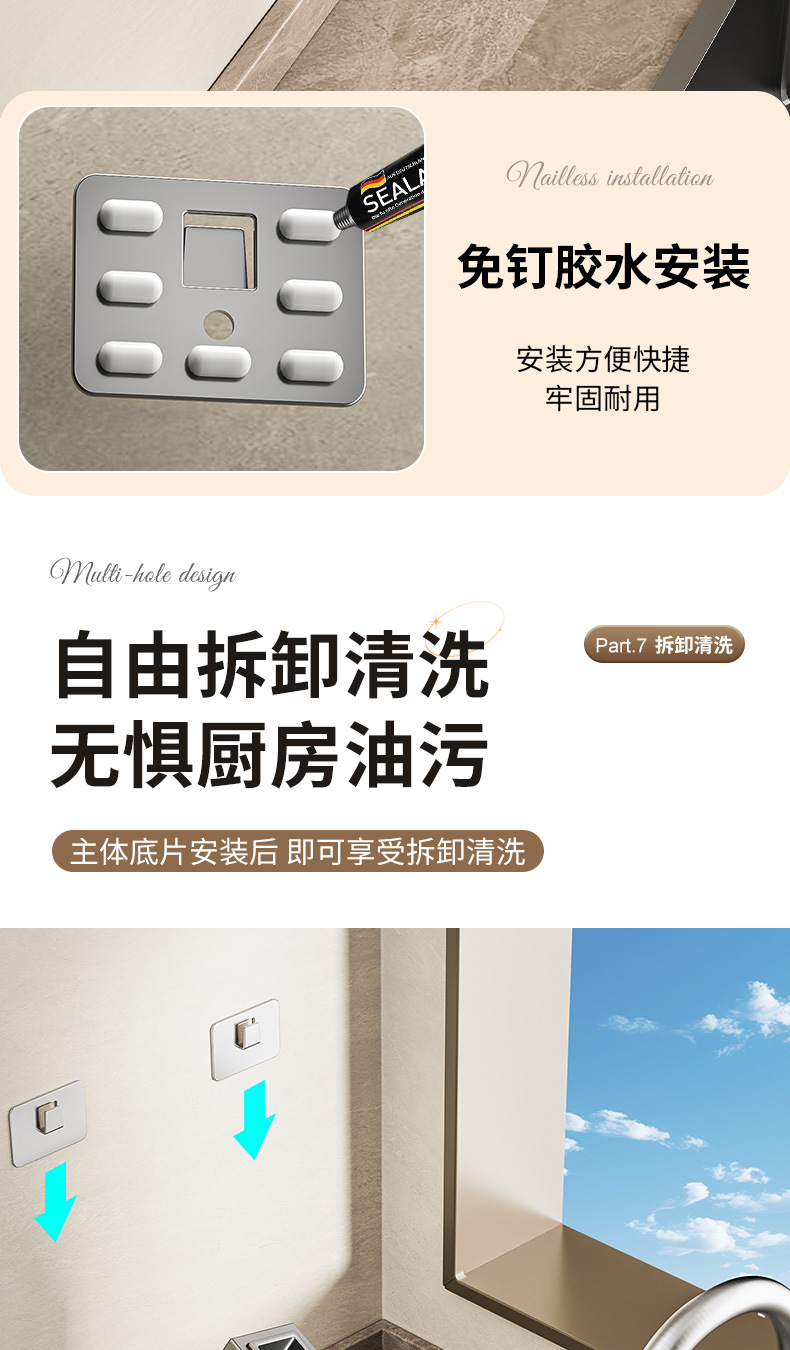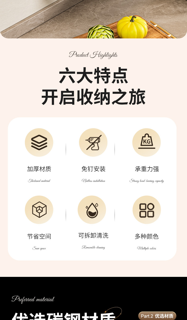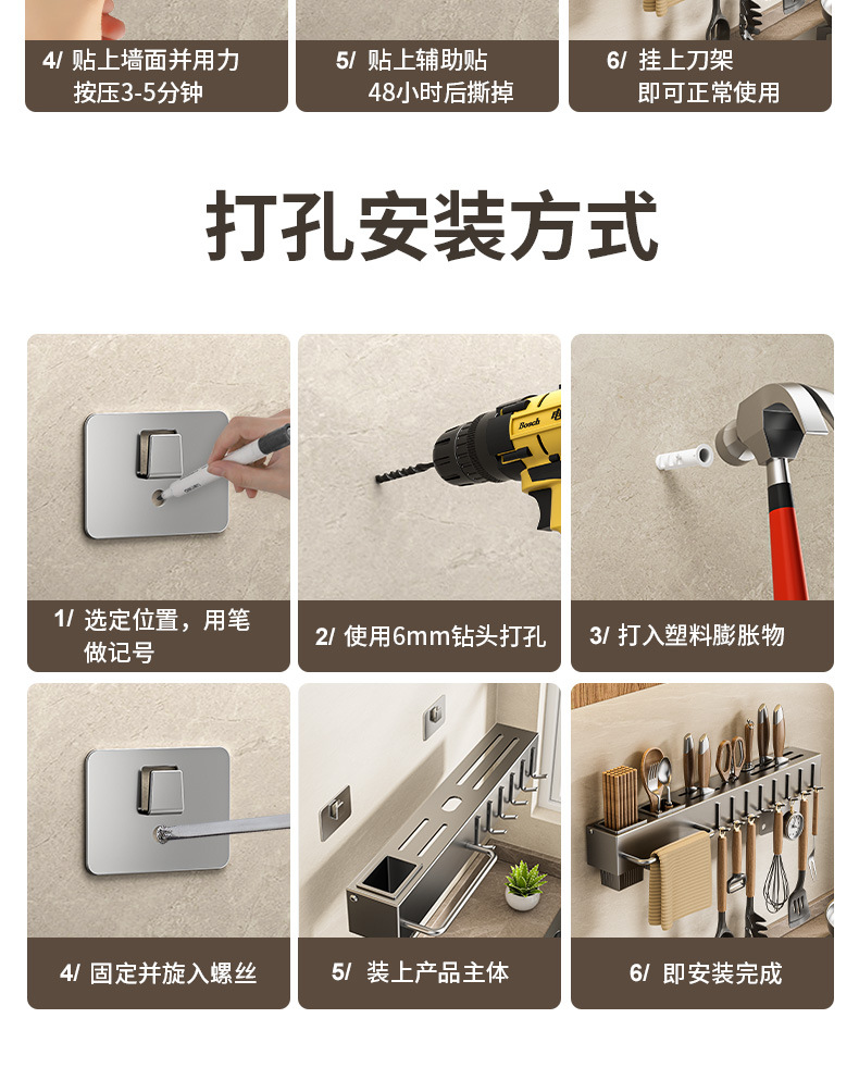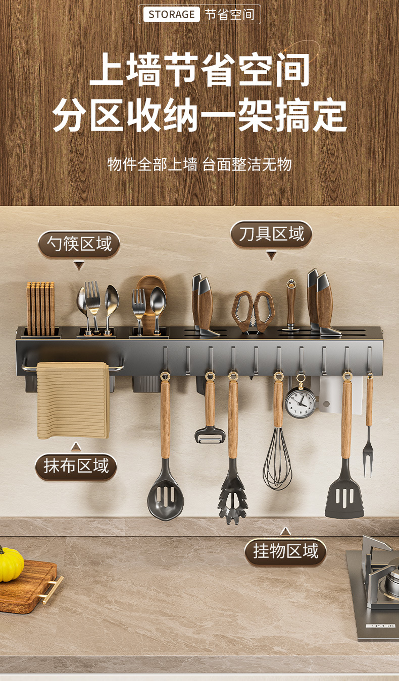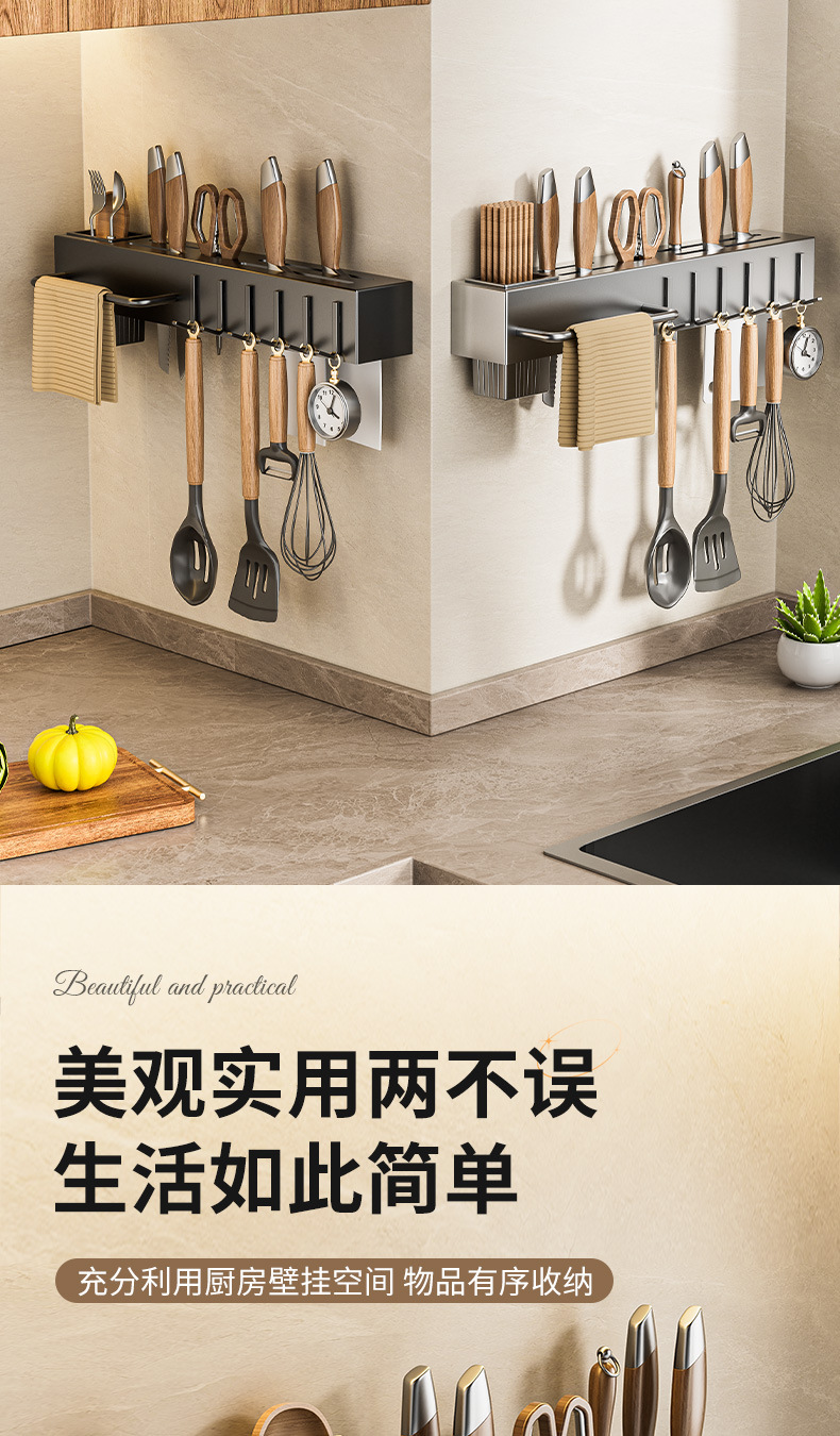 주방 수납 선반 칼꽂이 무타공 다기능 벽걸이 젓가락통 칼꽂이 후크형 젓가락 탄소강 수납 선반