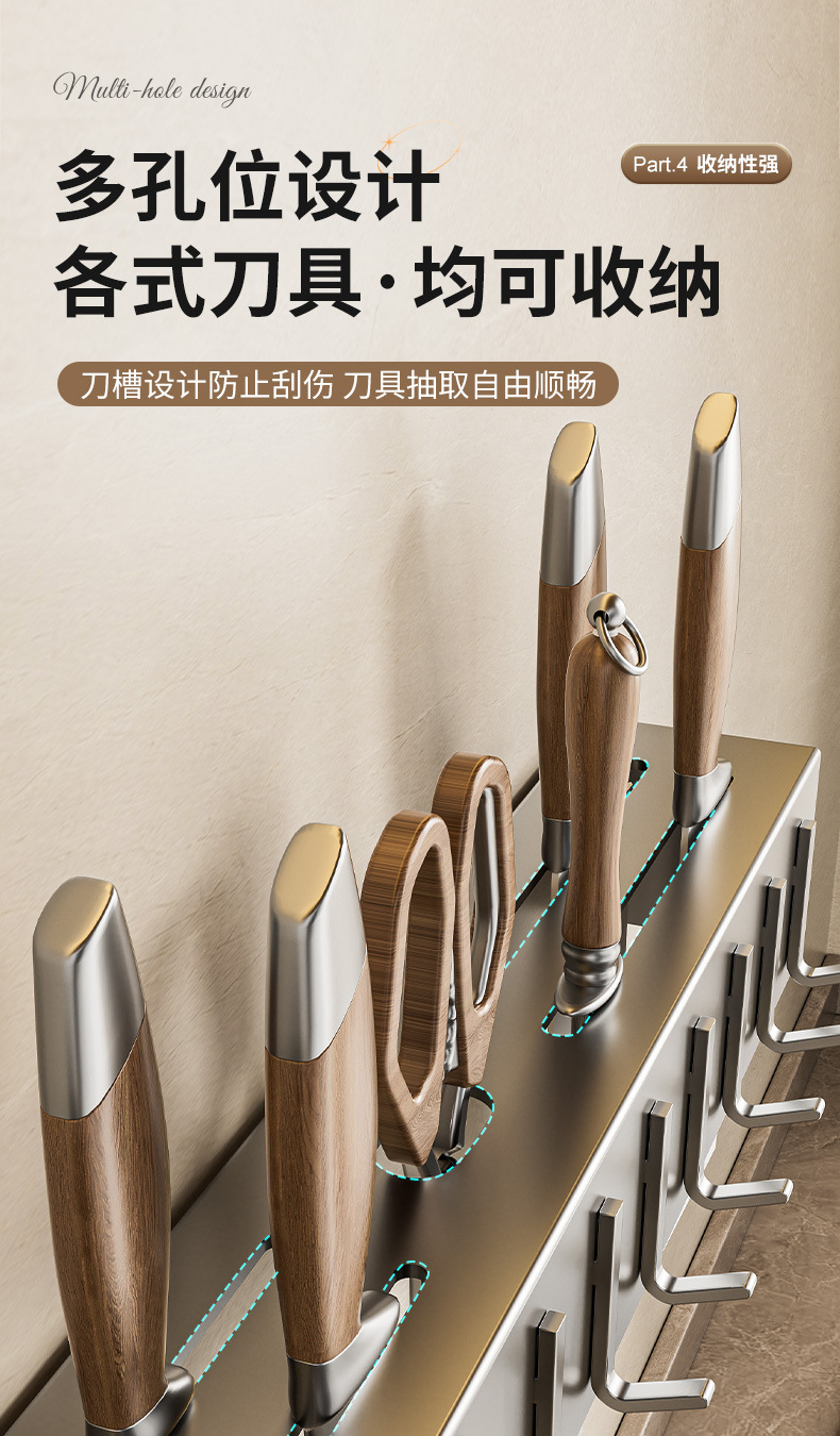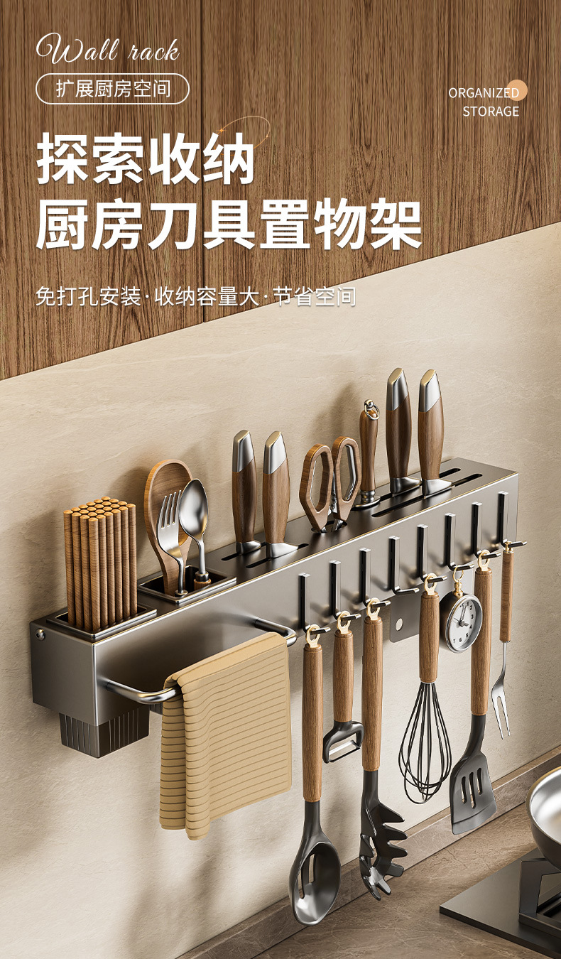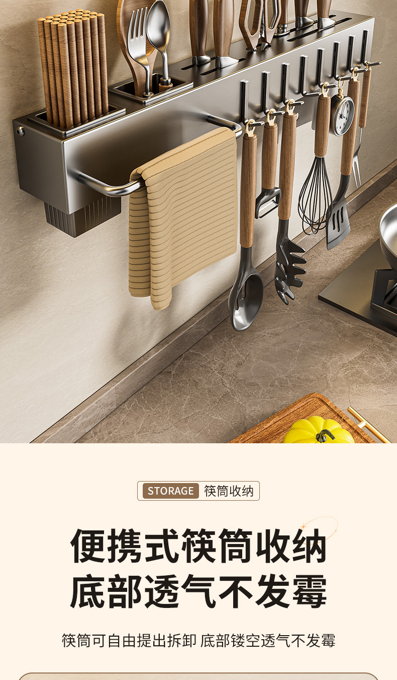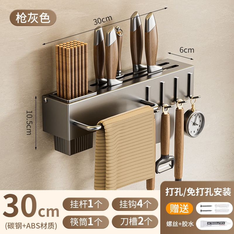 주방 수납 선반 칼꽂이 무타공 다기능 벽걸이 젓가락통 칼꽂이 후크형 젓가락 탄소강 수납 선반스토어 가기