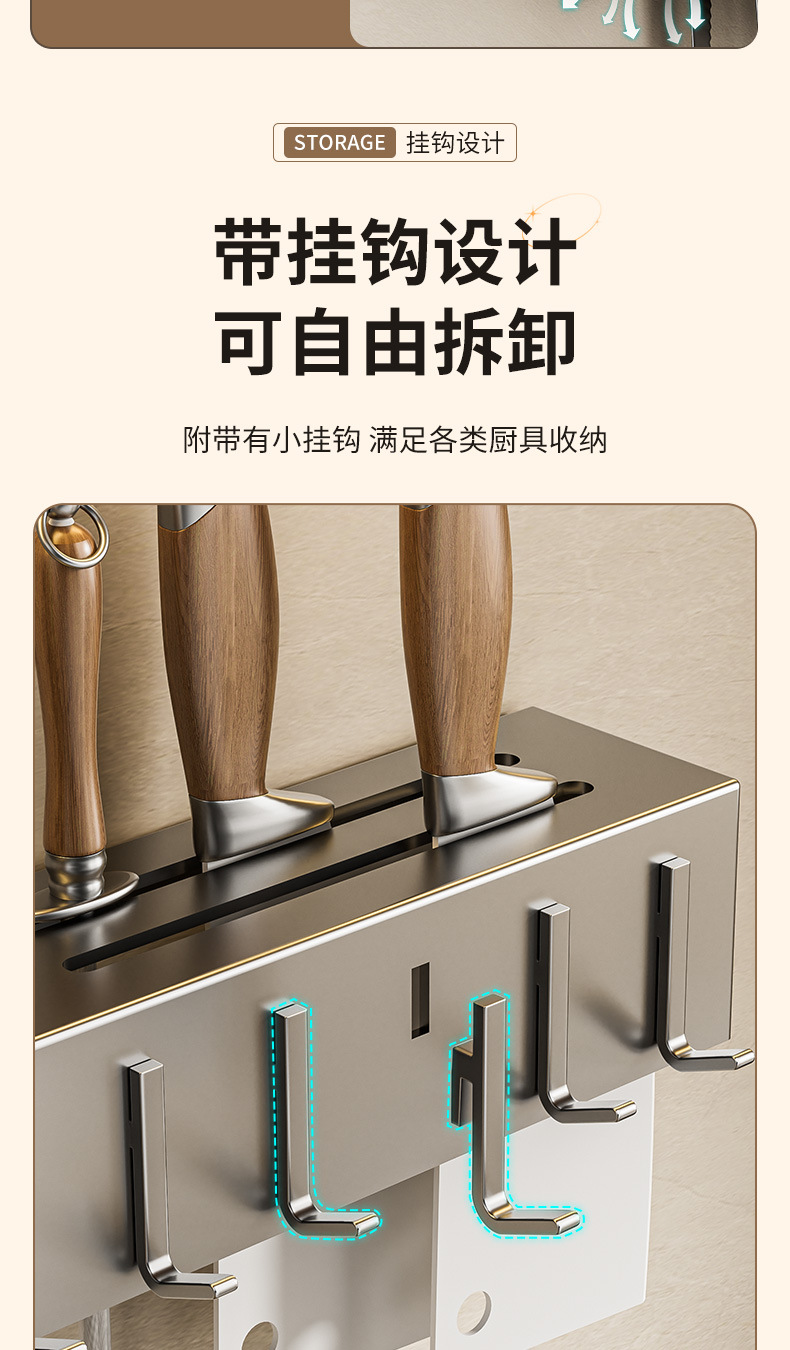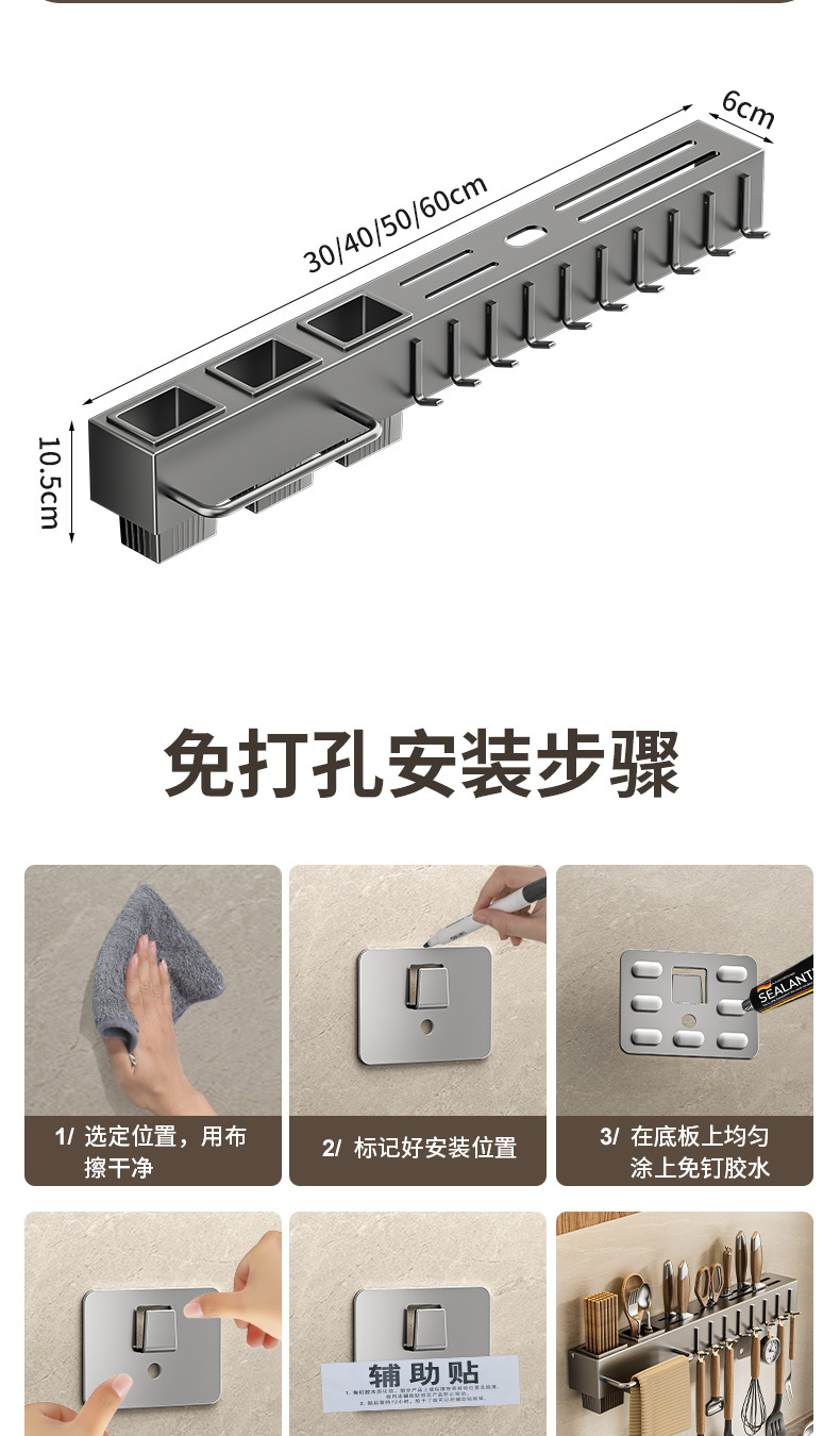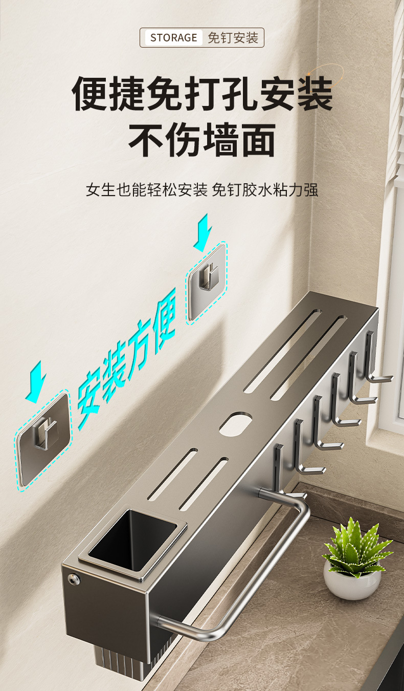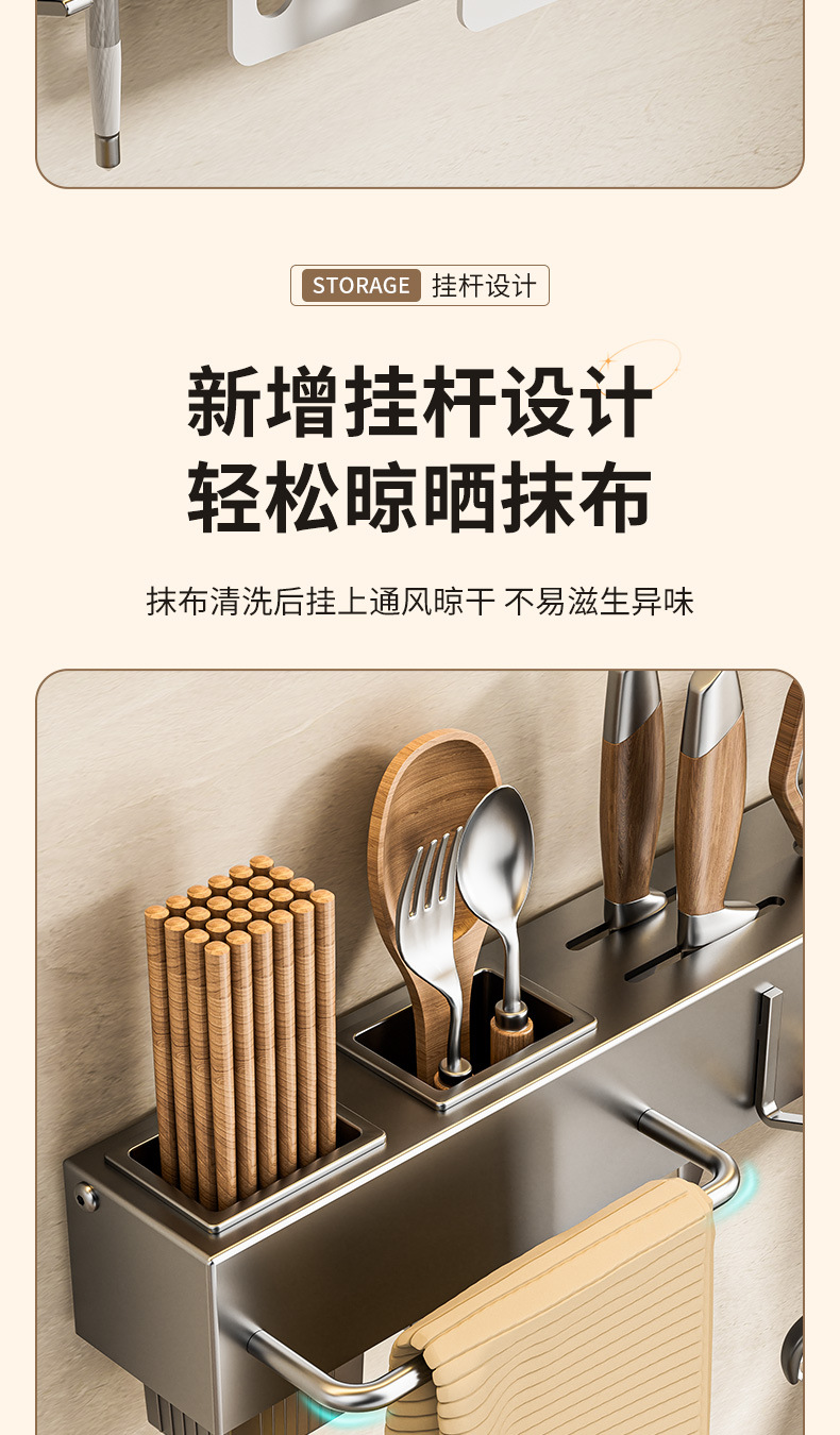 주방 수납 선반 칼꽂이 무타공 다기능 벽걸이 젓가락통 칼꽂이 후크형 젓가락 탄소강 수납 선반스토어 가기