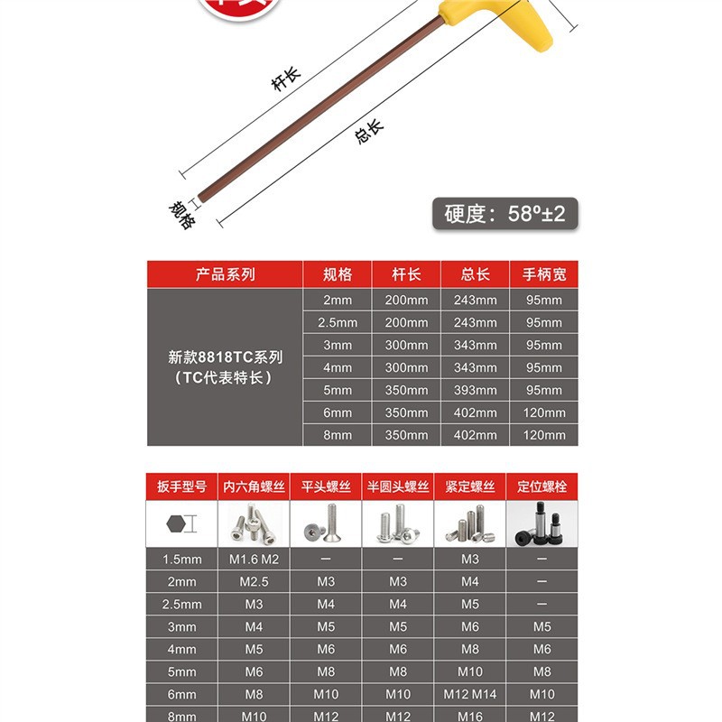 • 8818T형 2mm-8mm 특수 길이(7개 각 1개) *표준*95*183* 크롬 도금