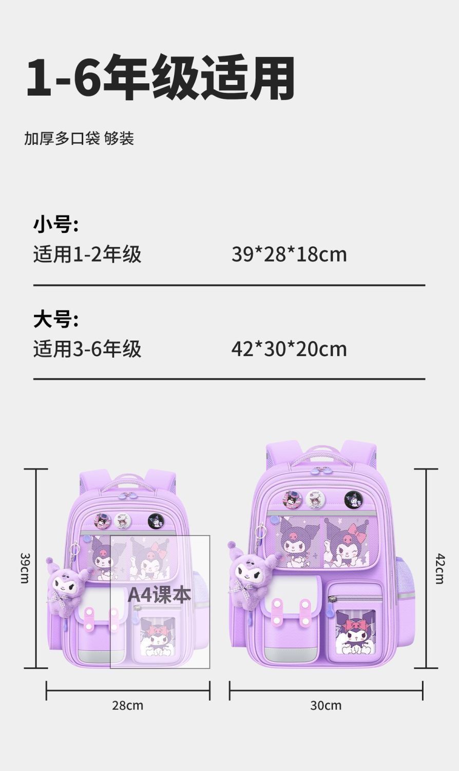 초등학생 책가방 부담 경감 어린이 1, 2, 3학년 쿠로미 캐릭터 여아 척추 보호 가벼운 백팩
