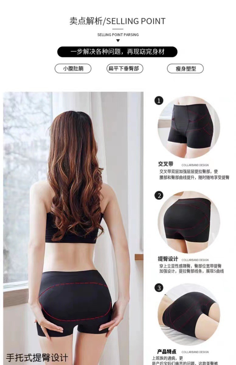 중간 허리 복부 바지 비 마킹 통기성 엉덩이 리프팅 높은 스트레치 보틀 플랫 반바지 여성용 브리프 얇은 여름 안전 바지