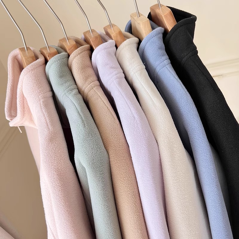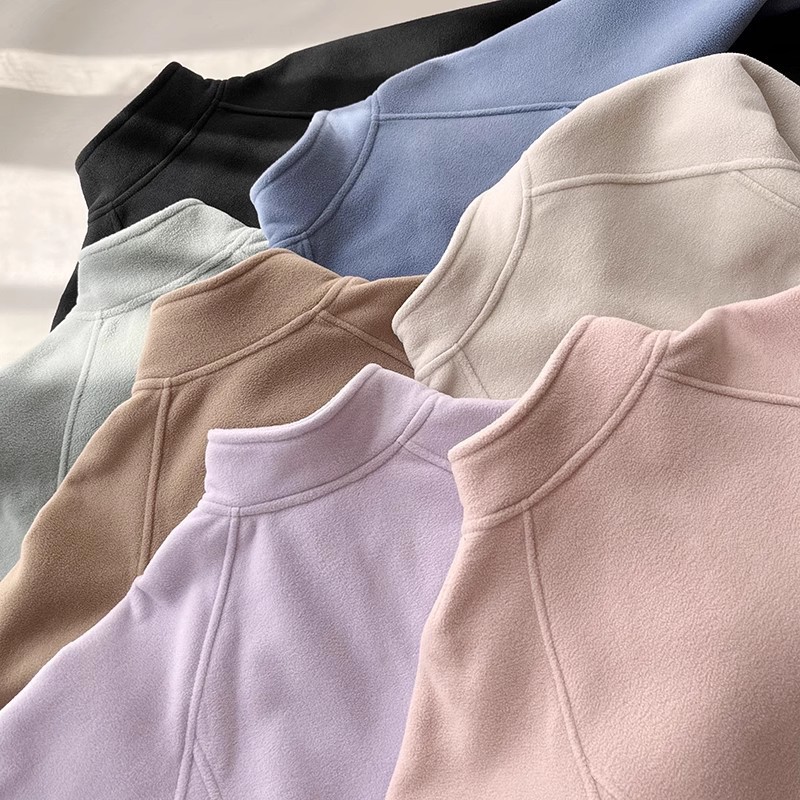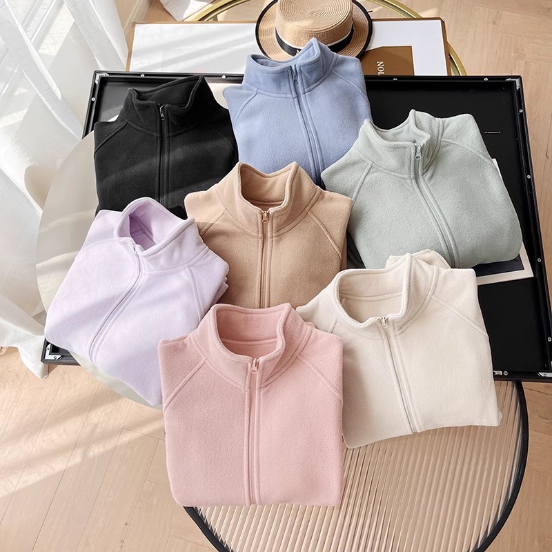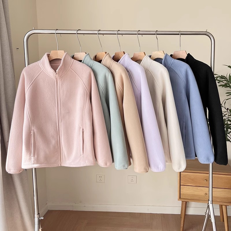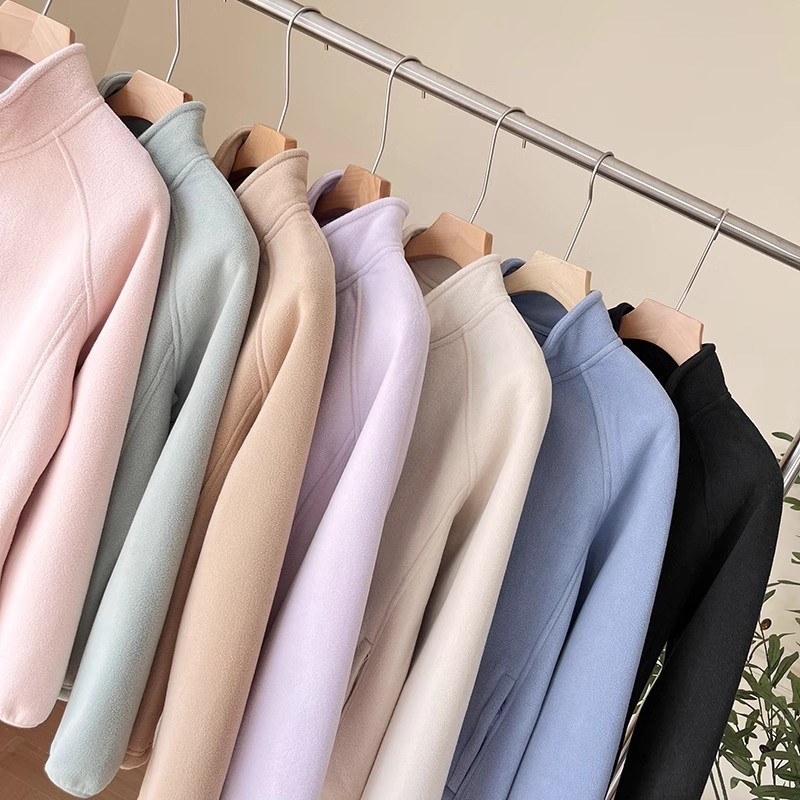 가을과 겨울 새로운 기모 스탠드 칼라 야외 스포츠 폴라 플리스 코트 여성의 따뜻한 폭행 코트 라이너 플리스 재킷스토어 가기