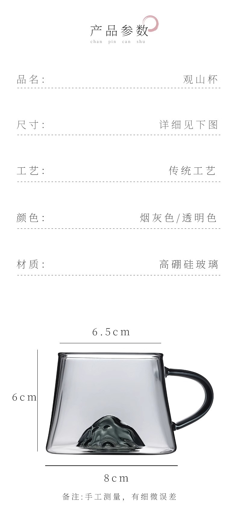 폭발 마운틴 뷰 컵 유리 작은 티 컵 개인 특별 벨트 마스터 컵 쿵푸 사무실 마시는 컵 티 컵