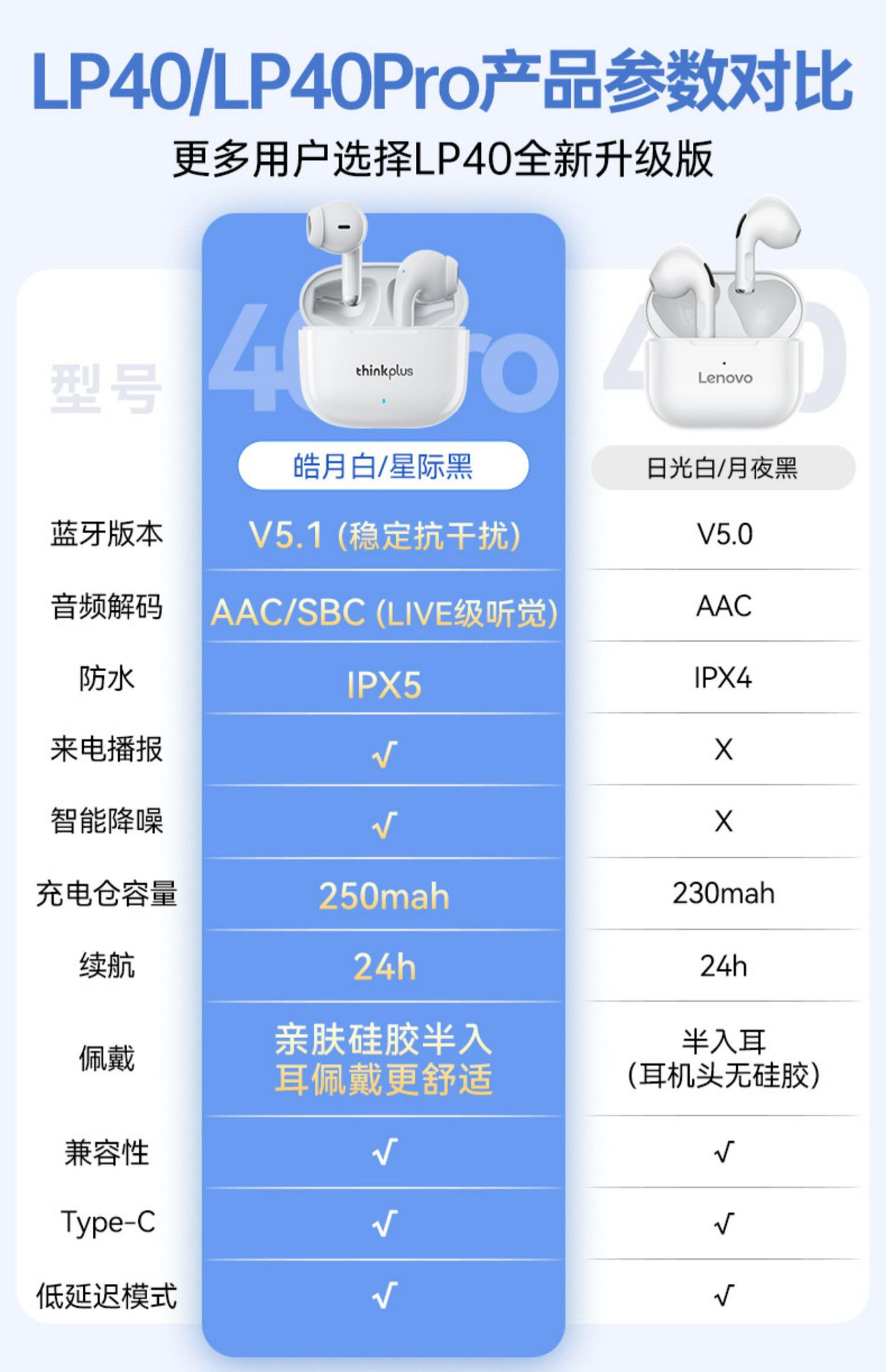 크로스보더 LP40Pro 블루투스 이어폰 무선 인이어 스포츠 노이즈 캔슬링 신제품 2025 남녀공용스토어 가기