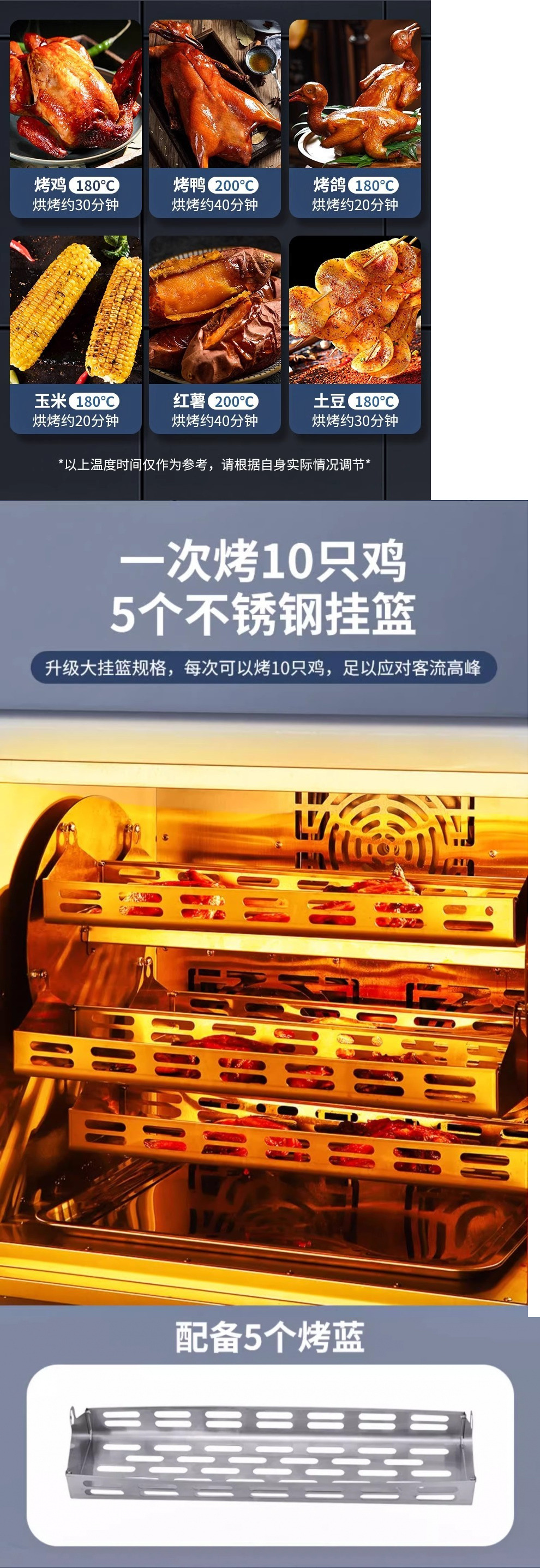 • [업그레이드 모델] 베이킹 바구니 5개/타이밍 회전 가열 - 치킨 10kg