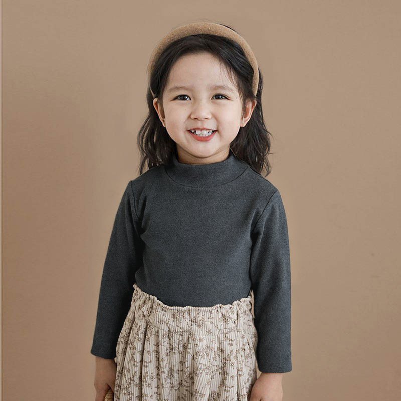 소녀베이스 셔츠 봄과 가을 겨울 벨벳 세미 하이 칼라 외국 스타일 내탑 어린이 아기 소년의 긴팔 티셔츠스토어 가기
