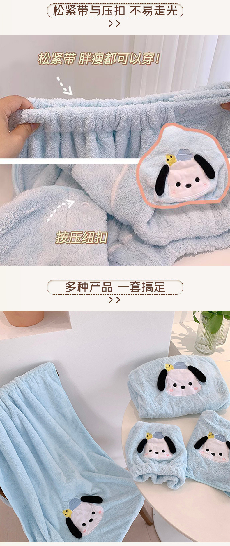 • 수건 + 머리 말리기 캡 + 목욕 스커트 + 목욕 수건