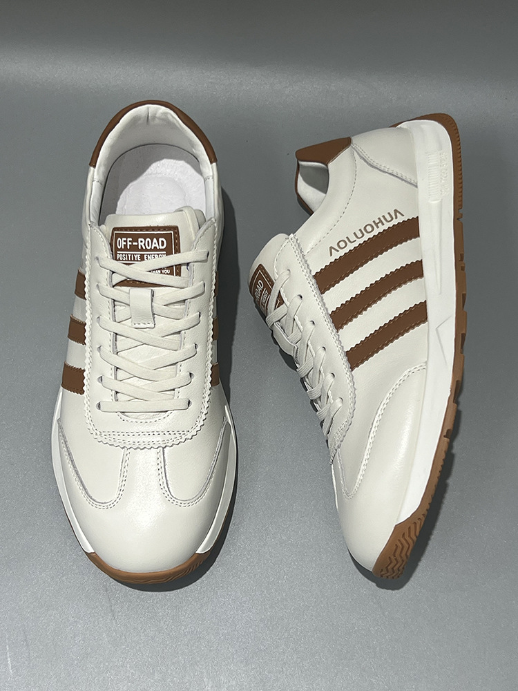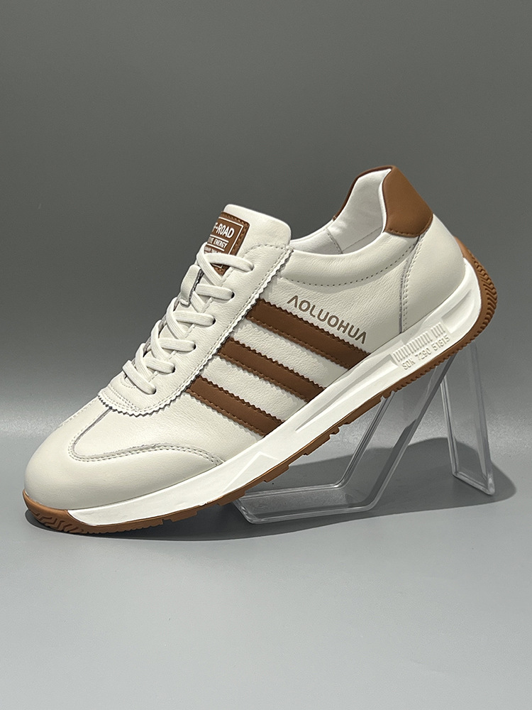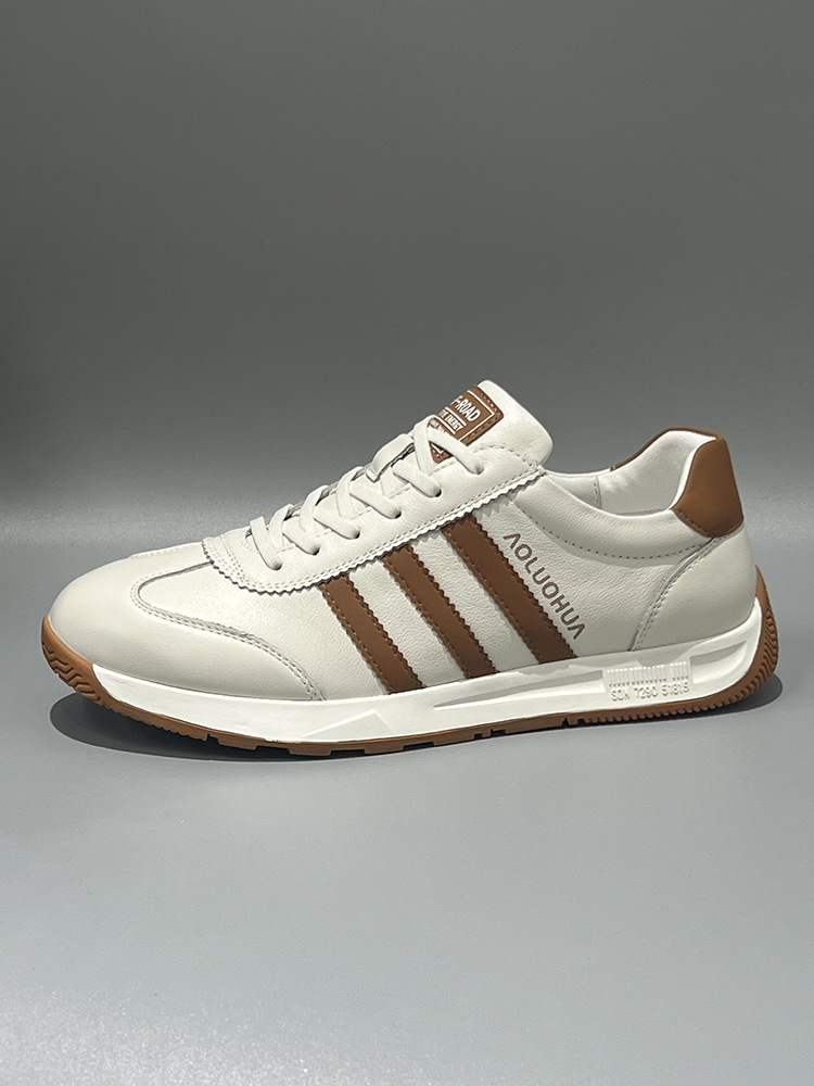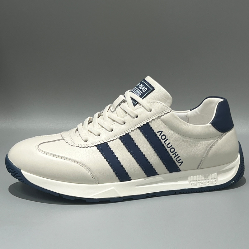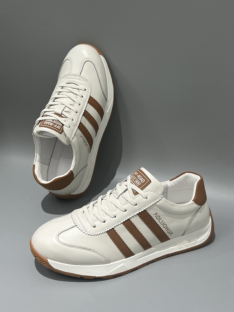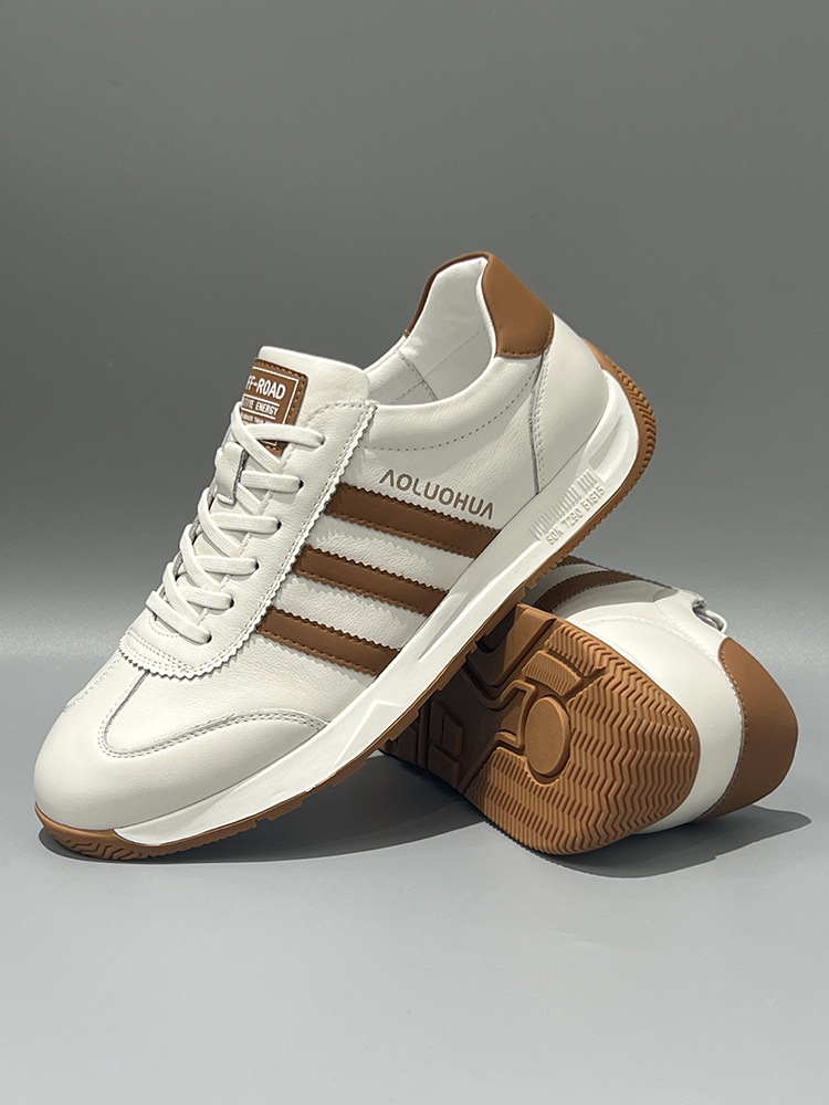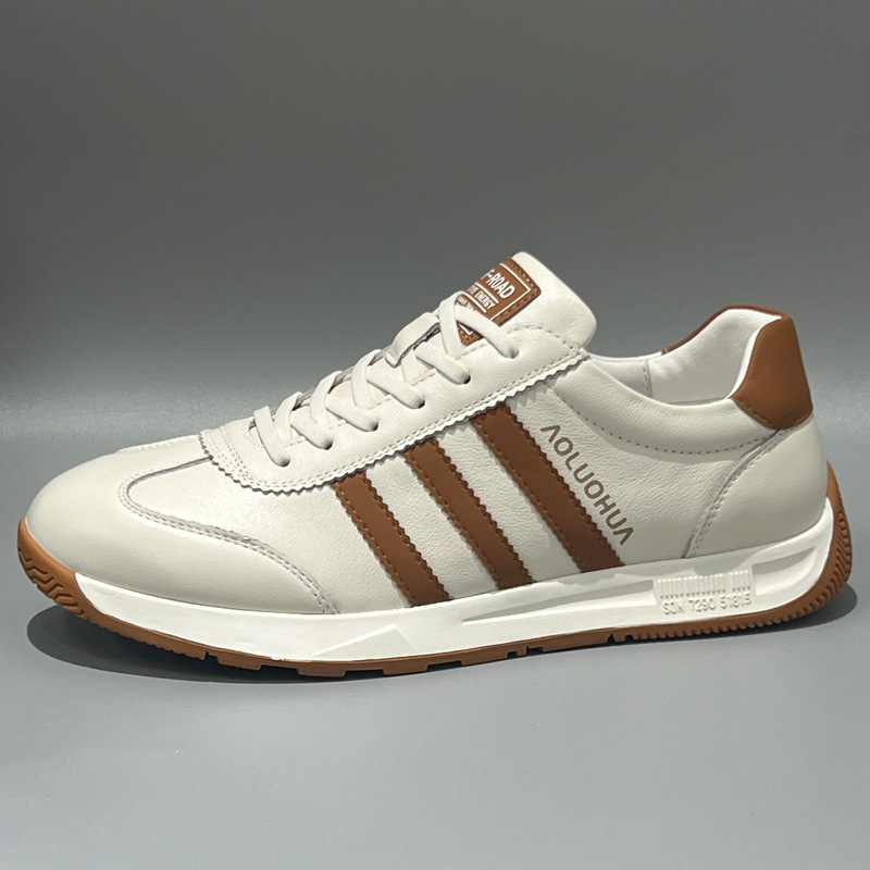 남성용 Forrest Gump 신발 2025 봄 신상품 정품 가죽 통기성 흰색 신발 부드러운 밑창 미끄럼 방지 다목적 캐주얼 남성 운동화