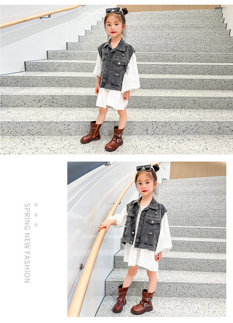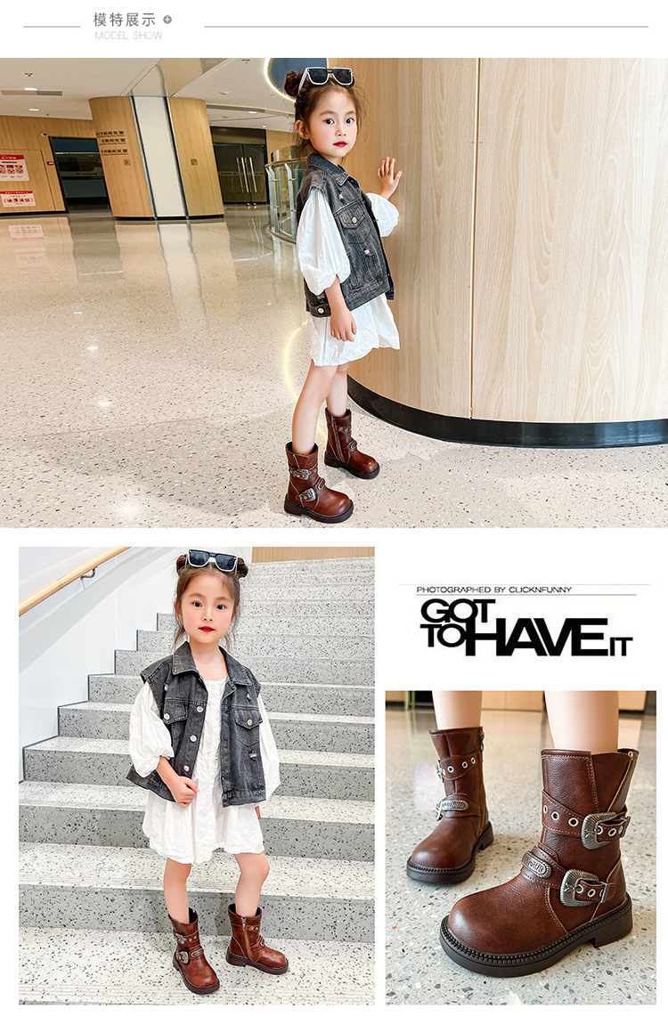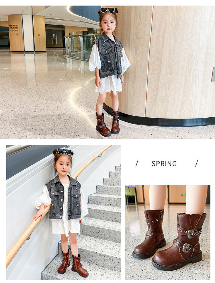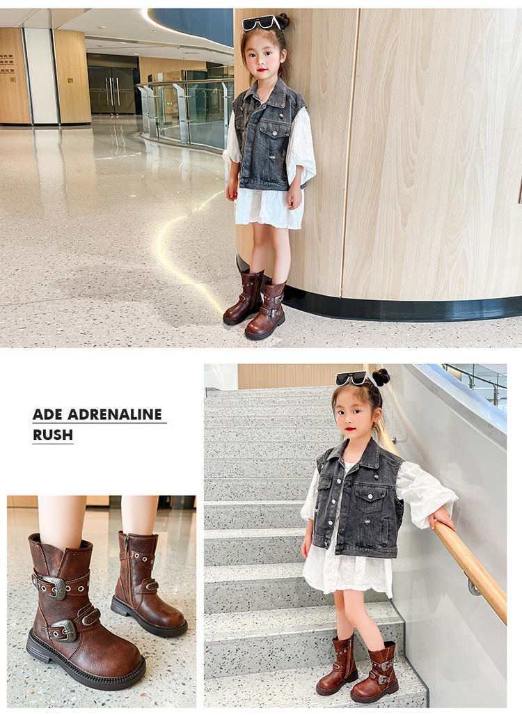 소녀 부츠 기모 어린이 긴 신발 2024 새로운 봄과 가을 마틴 부츠 트렌디 쿨 쇼 카우보이 부츠 초지스토어 가기