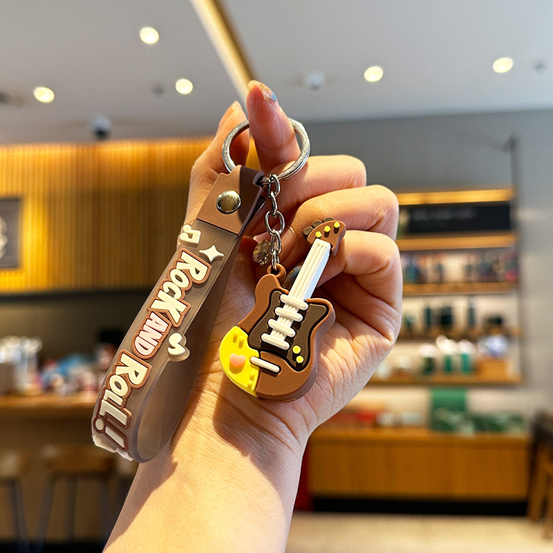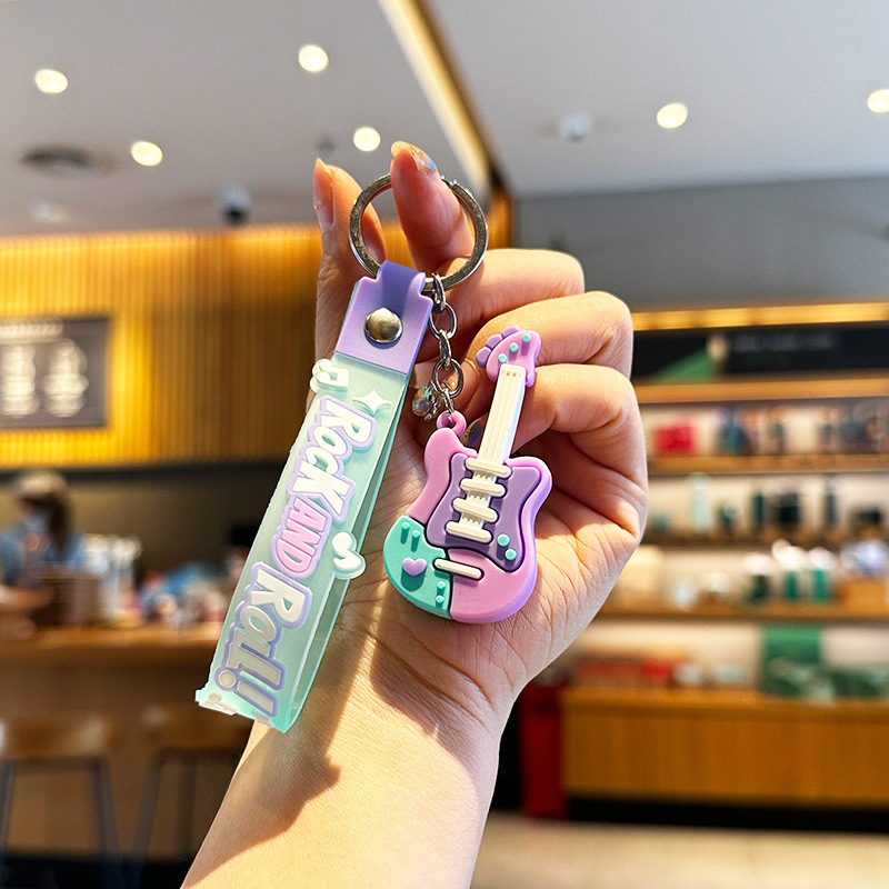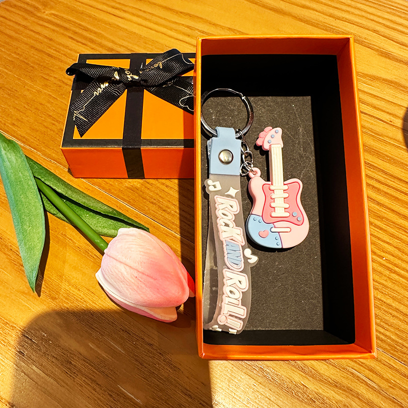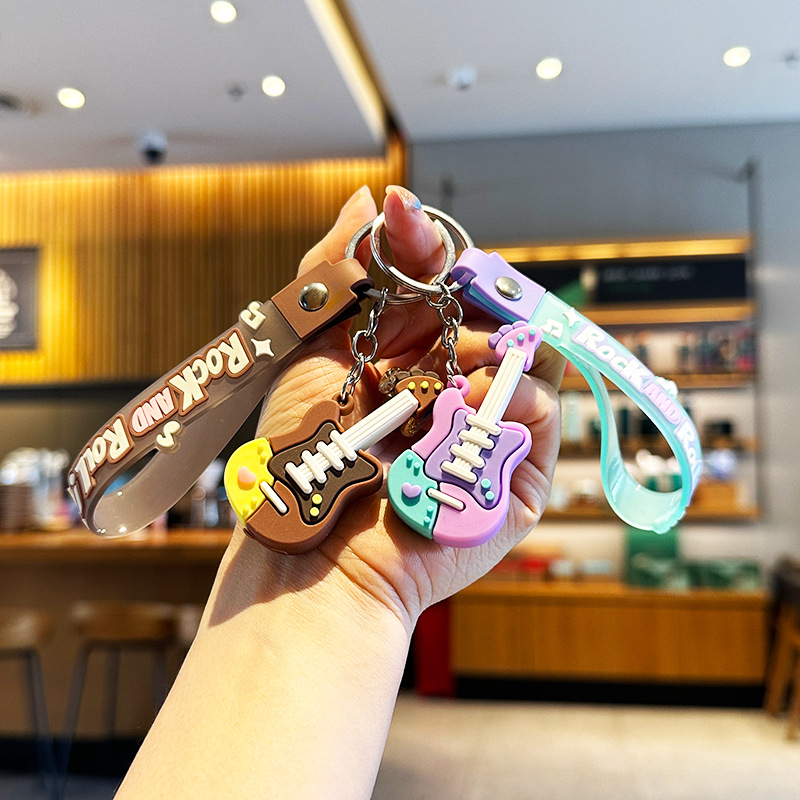 창조적 인 트렌디 쿨 기타 키 체인 음악 클래스 동반 행사 매달려 장식 학생 가방 전기 음절 키 체인 작은 선물스토어 가기