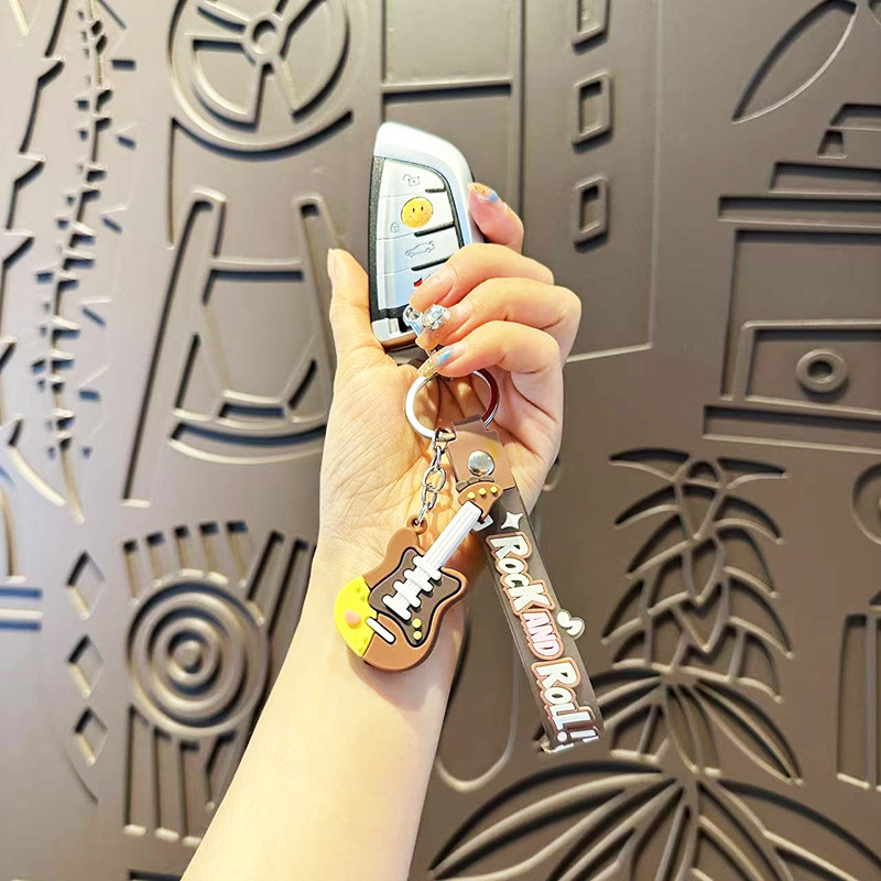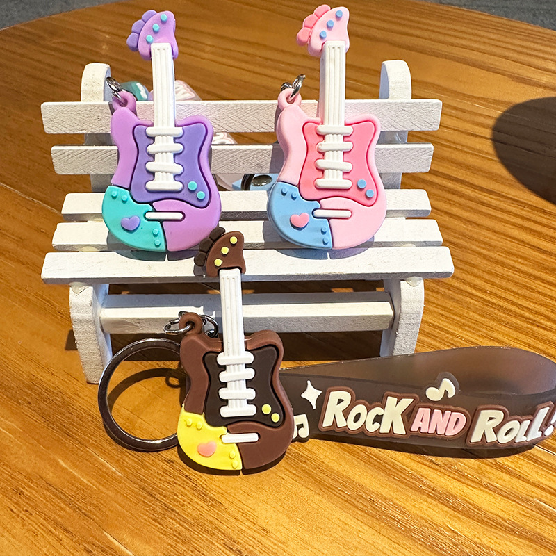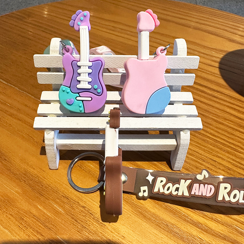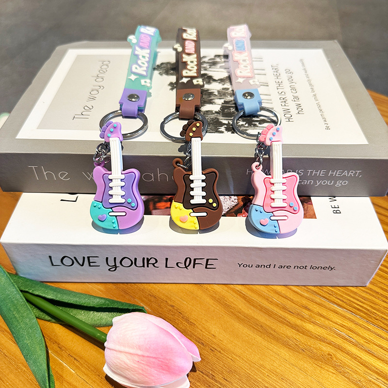 창조적 인 트렌디 쿨 기타 키 체인 음악 클래스 동반 행사 매달려 장식 학생 가방 전기 음절 키 체인 작은 선물