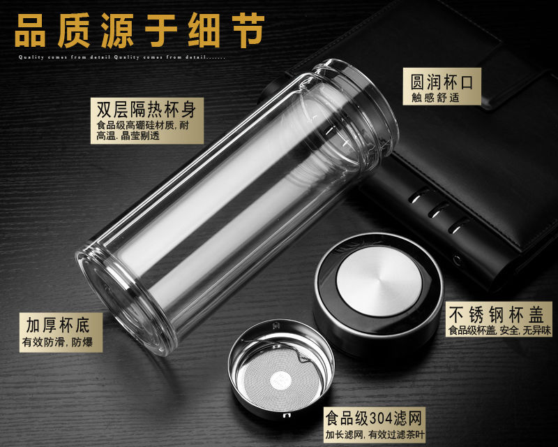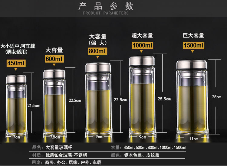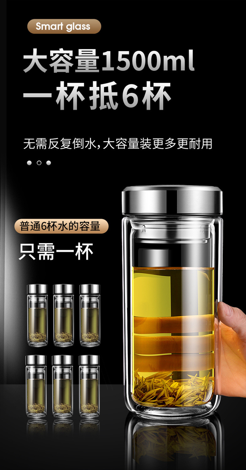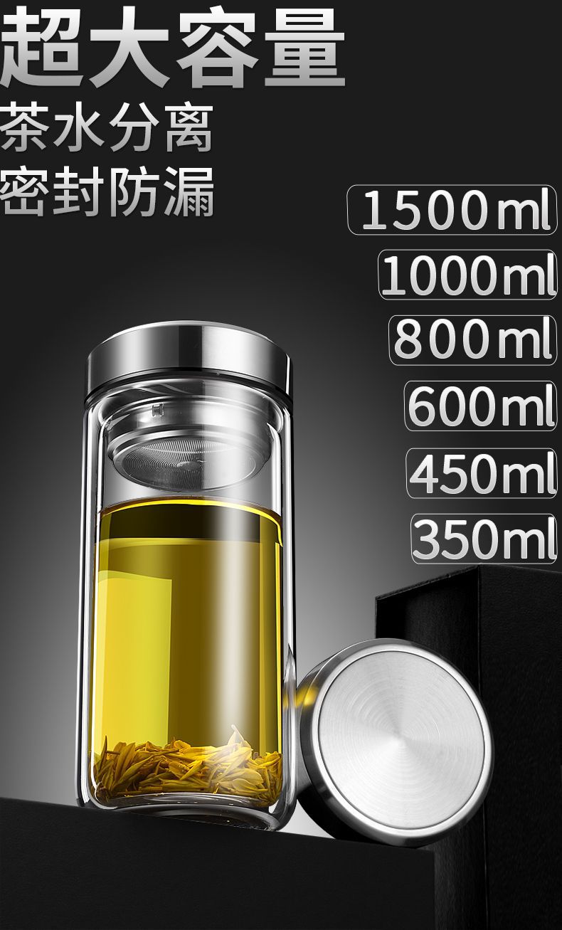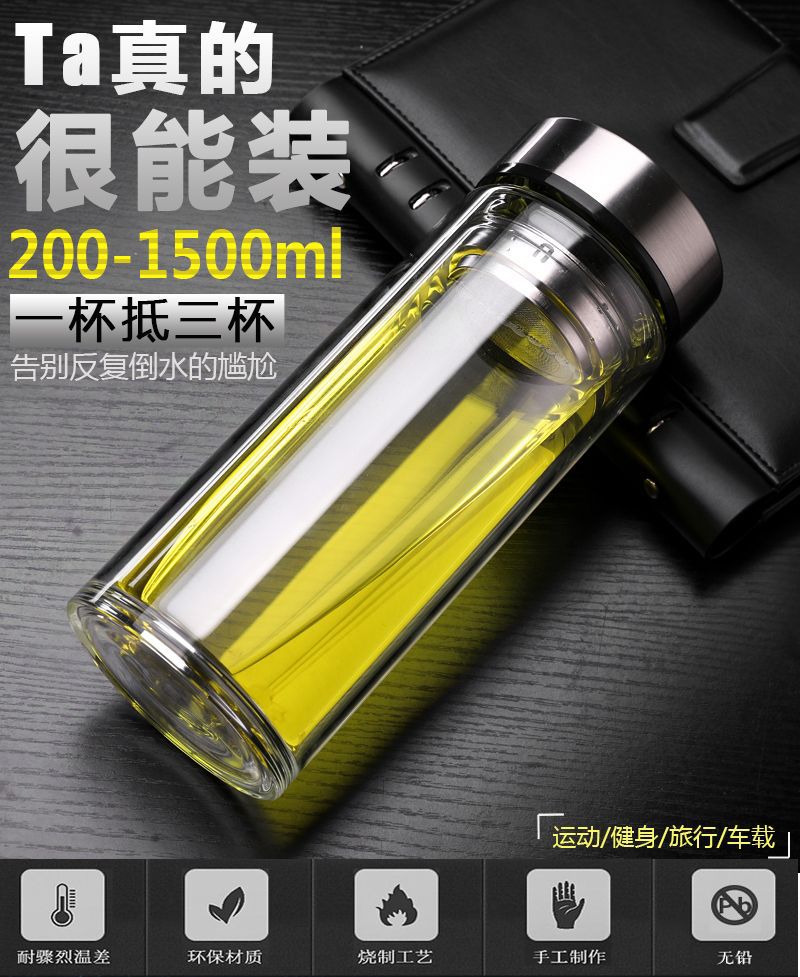 대용량 이중 층 유리 방열 폭발 방지 차 컵 남녀 사무실 물 컵 가정용 차량 열 절연