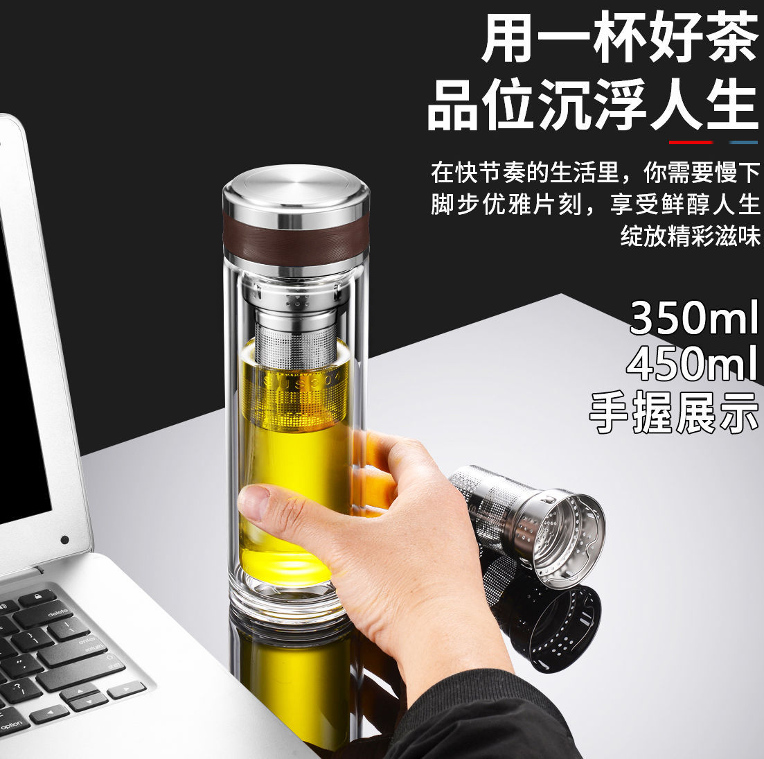 대용량 이중 층 유리 방열 폭발 방지 차 컵 남녀 사무실 물 컵 가정용 차량 열 절연스토어 가기