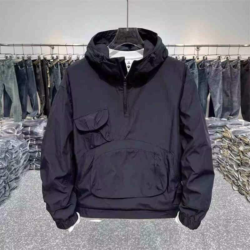 가을 남자 후드 클록 풀오버 재킷 청소년 느슨한 대형 포켓 캐주얼 야외 루소 트렌디 탑스토어 가기