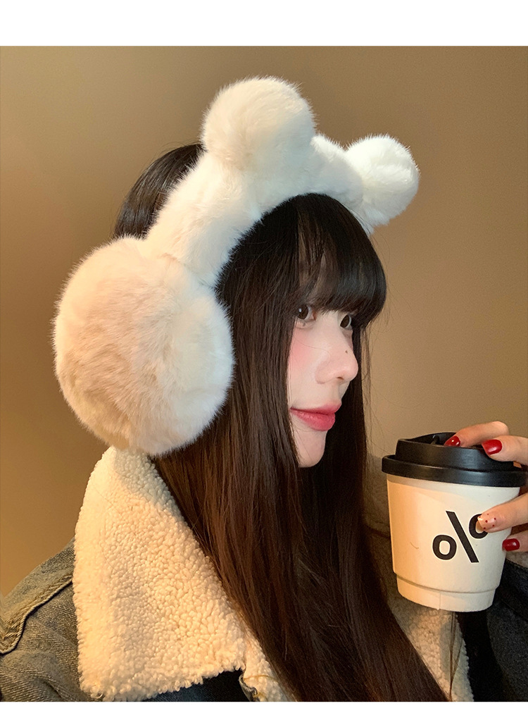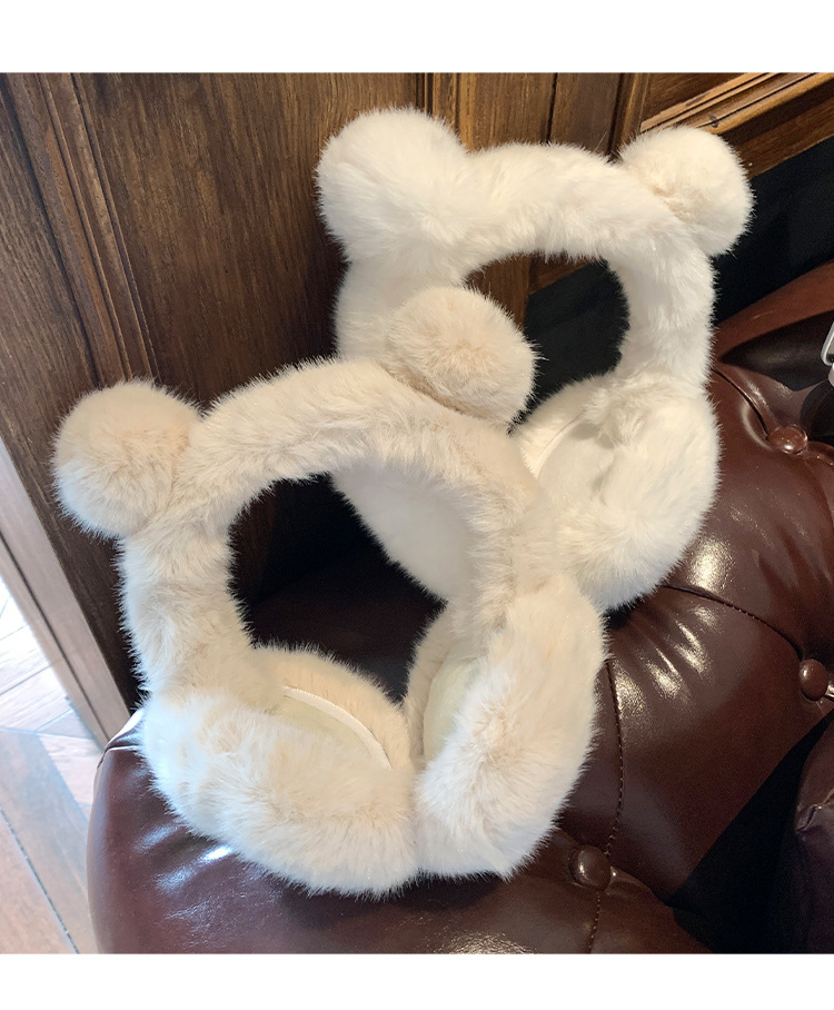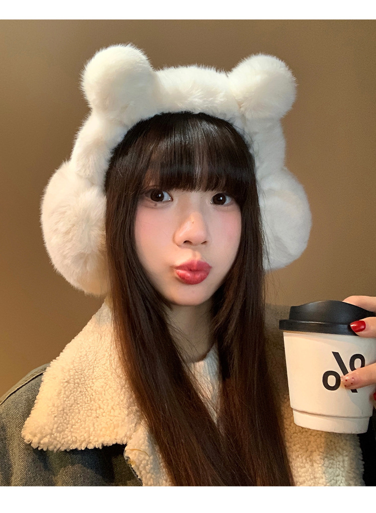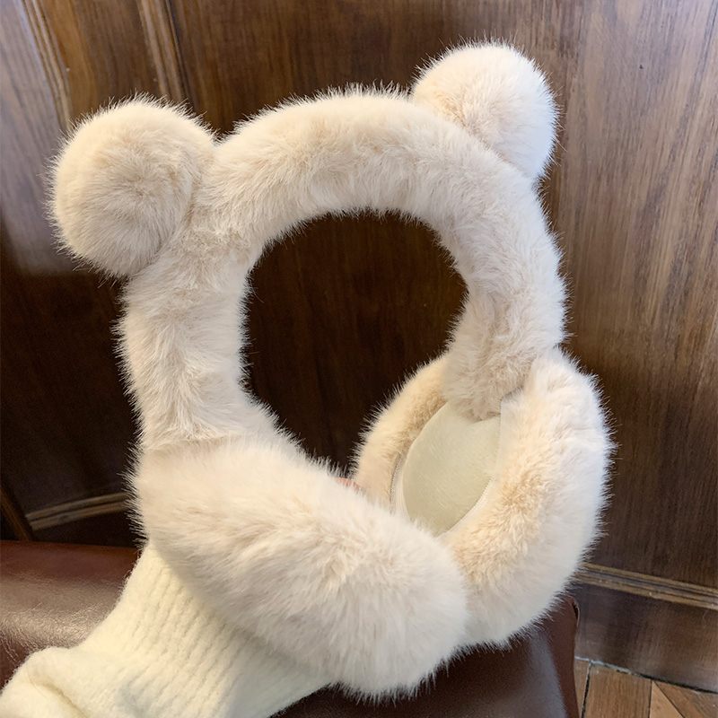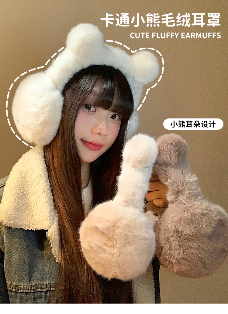 귀여운 곰 흰 봉제 귀마개 겨울 여성의 따뜻한 감기 방지 냉동 귀 따뜻한 승마 귀마개 귀 덮개