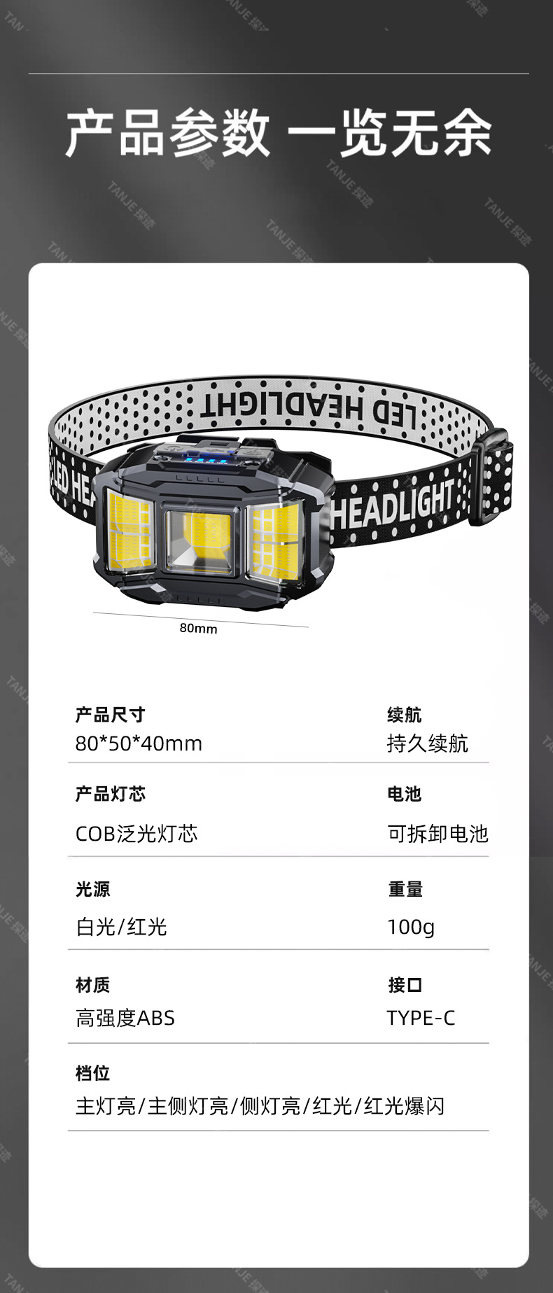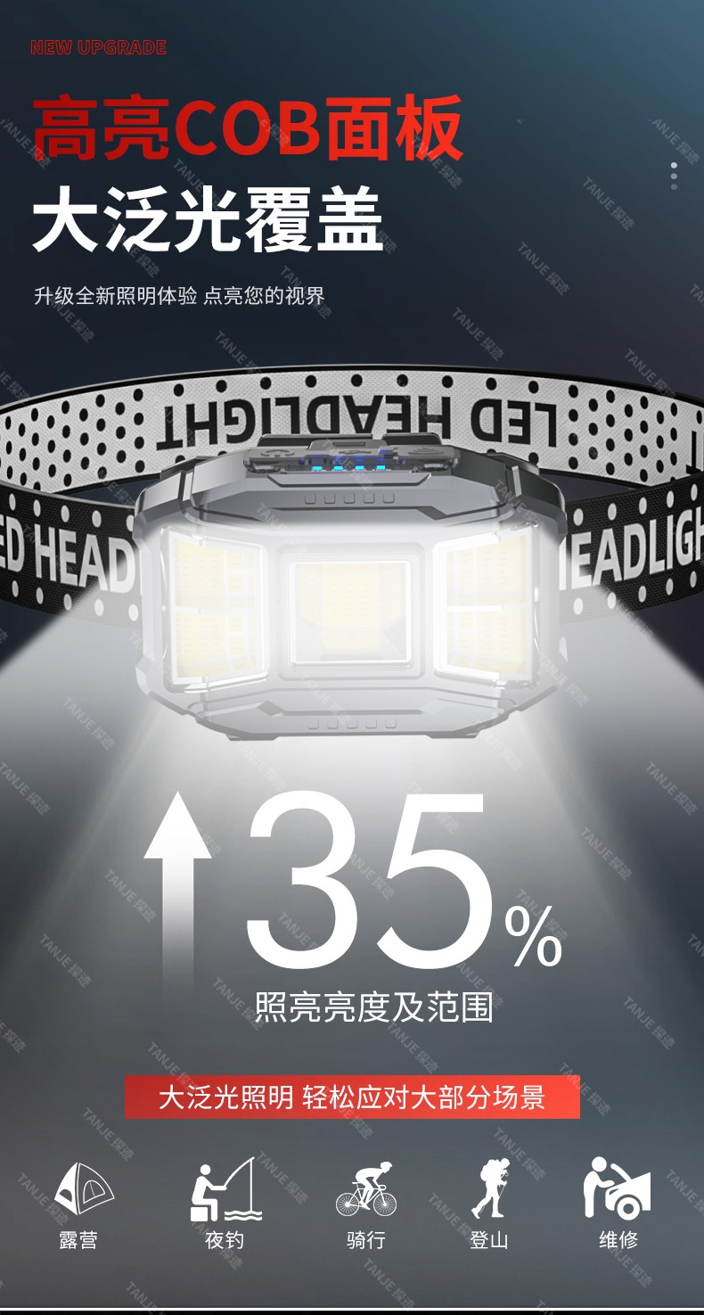 대형 투광 조명 작업 헤드 램프 강한 빛 슈퍼 밝은 충전 긴 배터리 수명 붉은 빛 야외 자동차 수리 난시 유도 광부의 램프스토어 가기