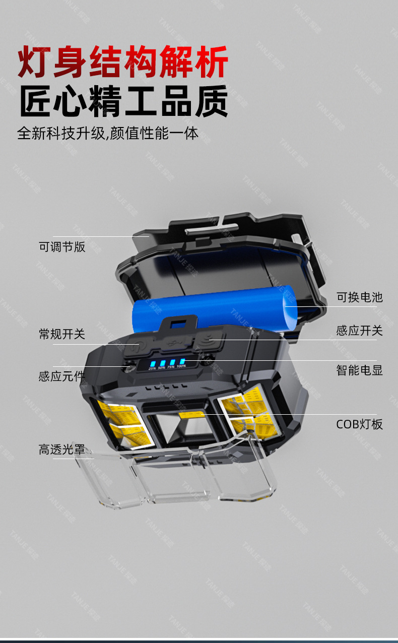 대형 투광 조명 작업 헤드 램프 강한 빛 슈퍼 밝은 충전 긴 배터리 수명 붉은 빛 야외 자동차 수리 난시 유도 광부의 램프