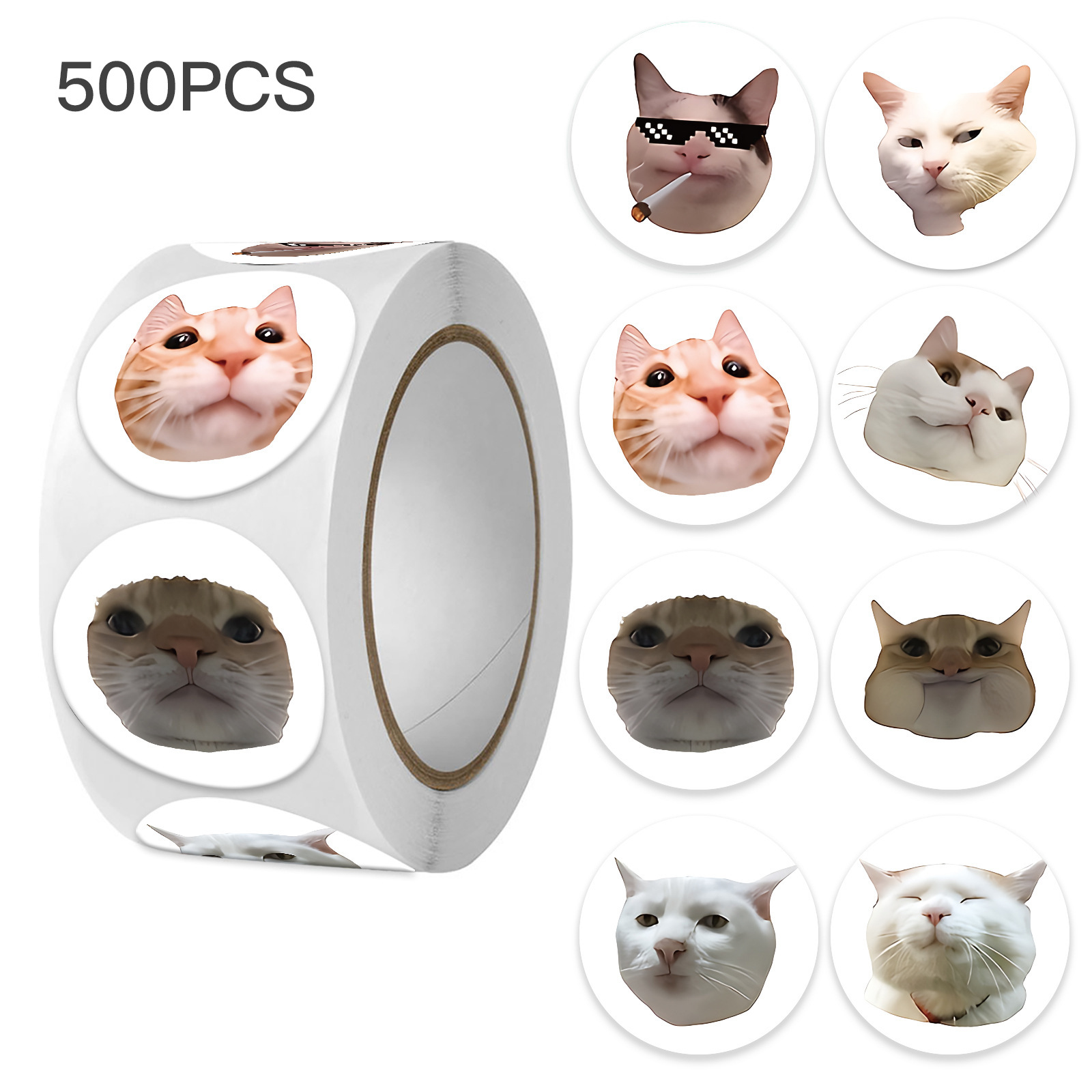 도매 롤 라운드 씰 고양이 표현 가방 스티커 선물 선물 500 1 롤 포장 장식 테이프