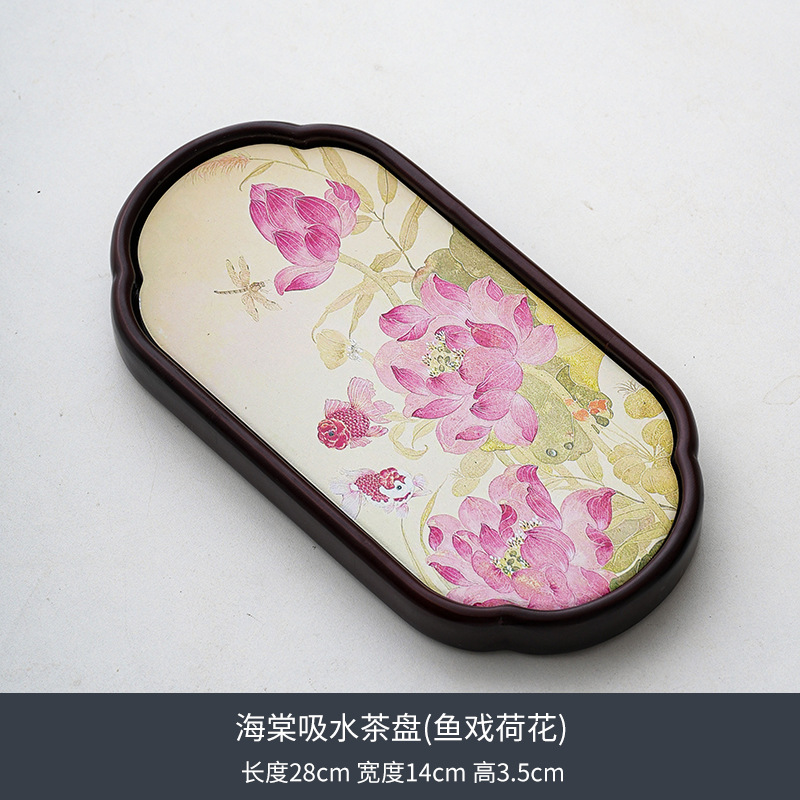 • 베고니아 흡수성 차 트레이(연꽃과 노는 물고기)