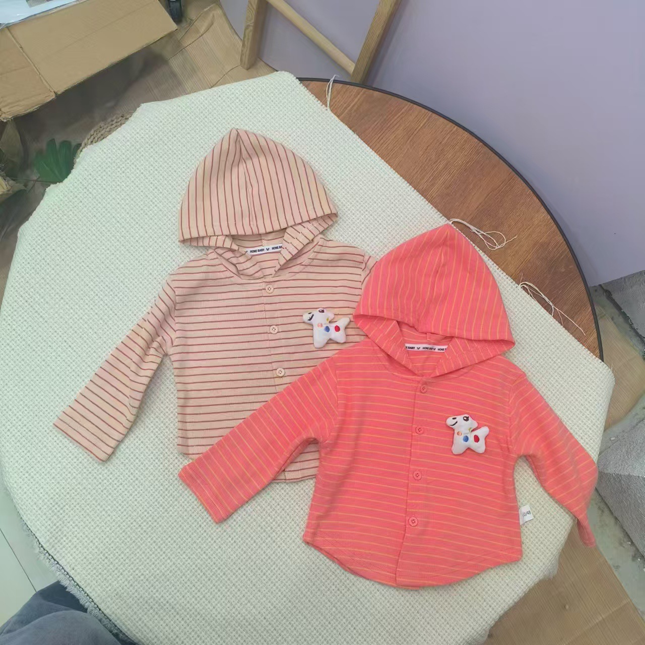 소녀들의 봄과 가을 긴팔 캐주얼 두건 여성의 보물 한국식 입체 만화 가로 스트립스토어 가기