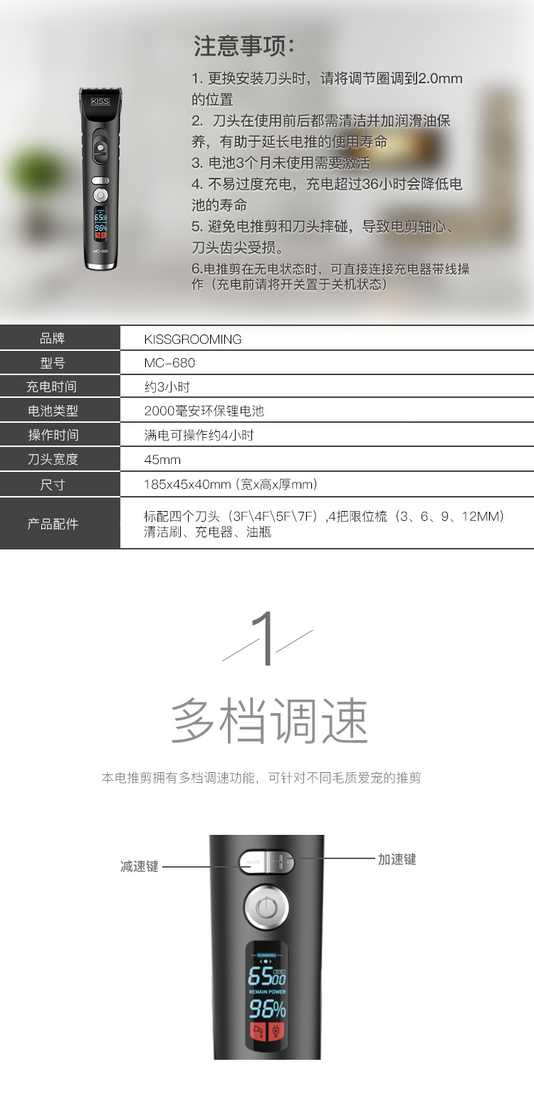 KISS 애완동물 전기 이발기 MC-680 강아지 털깎이 전기 이발기 애완동물 가게 전문 미용 이발기 고양이용스토어 가기