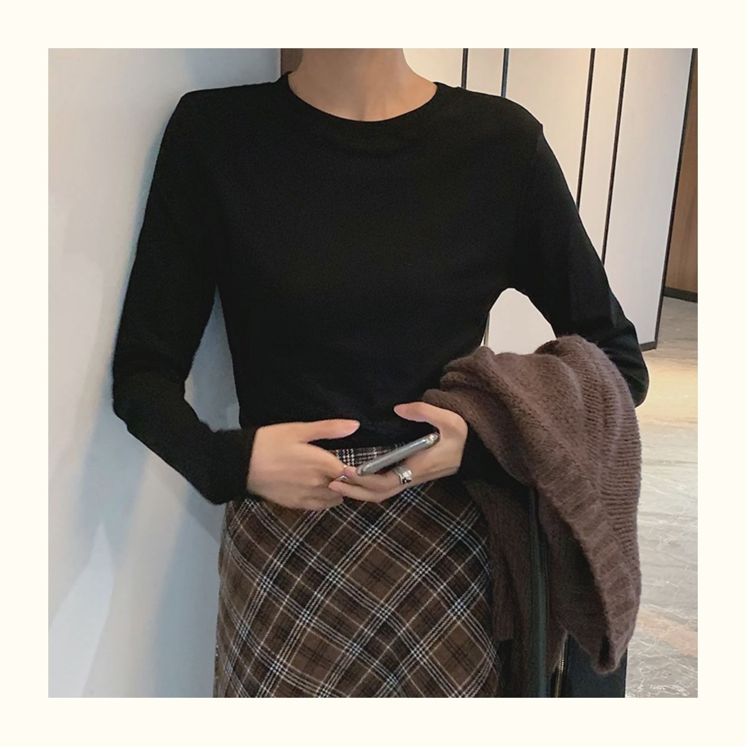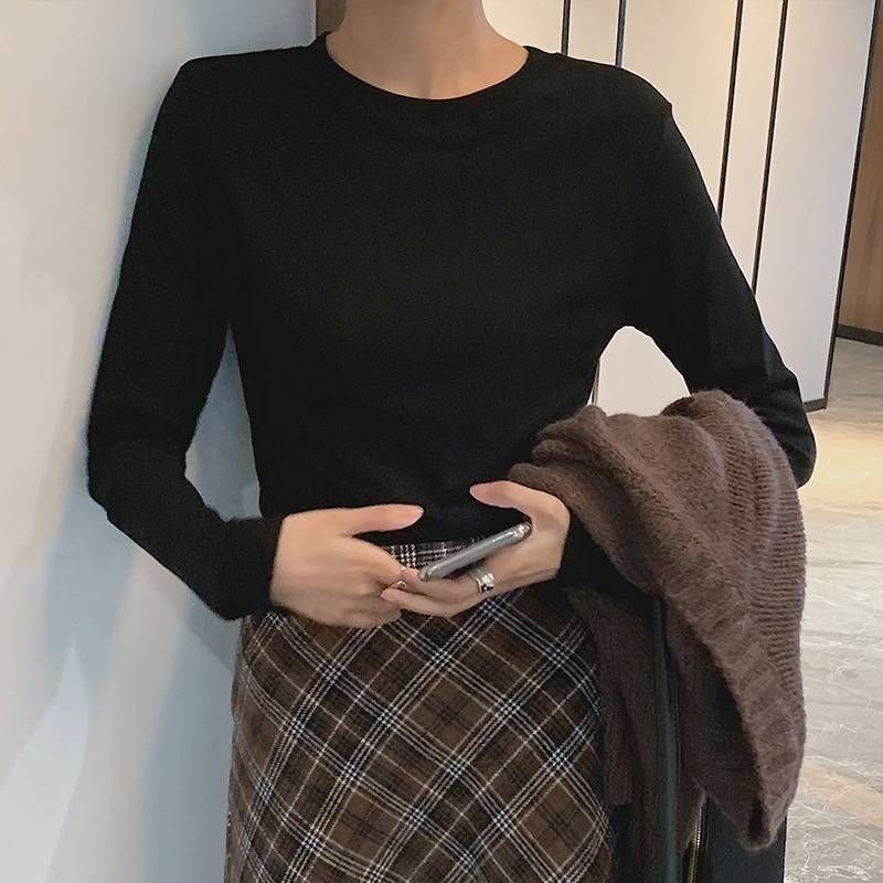 300g 신강 순수 코튼 심플 화이트 바닥 셔츠 여성용 2024 봄, 가을 라운드 넥 긴팔 티셔츠 여성용 탑 인