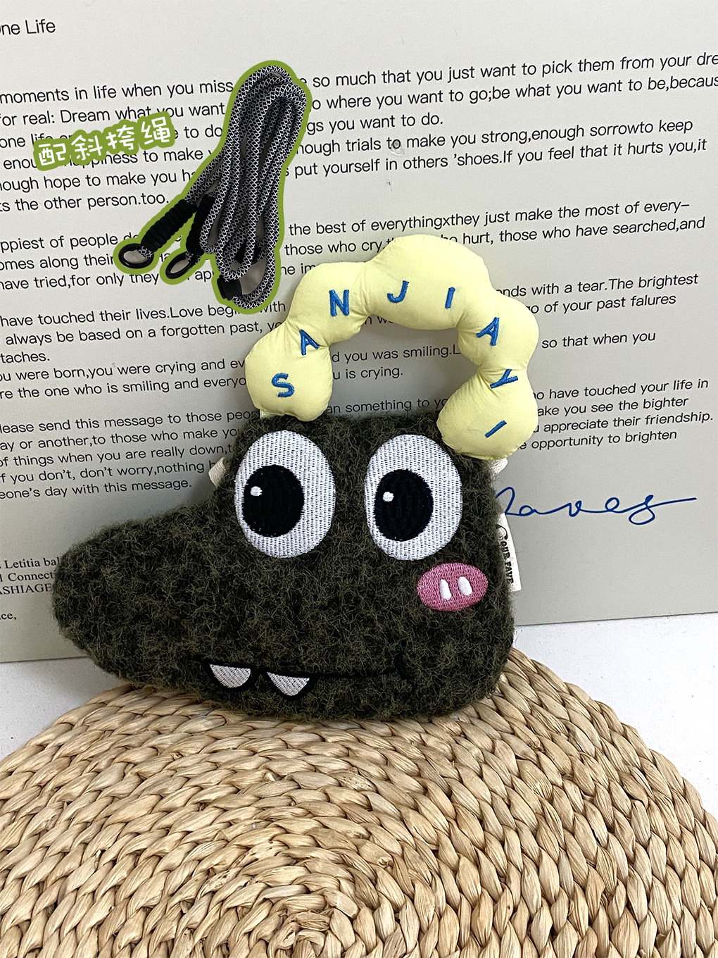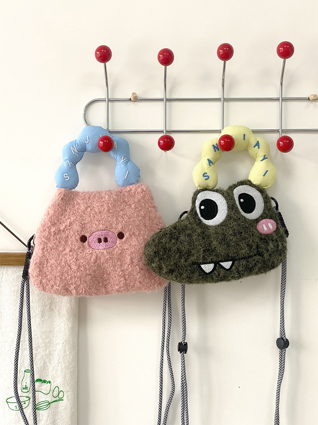 • 카툰 휴대폰 가방 - 초록 털털