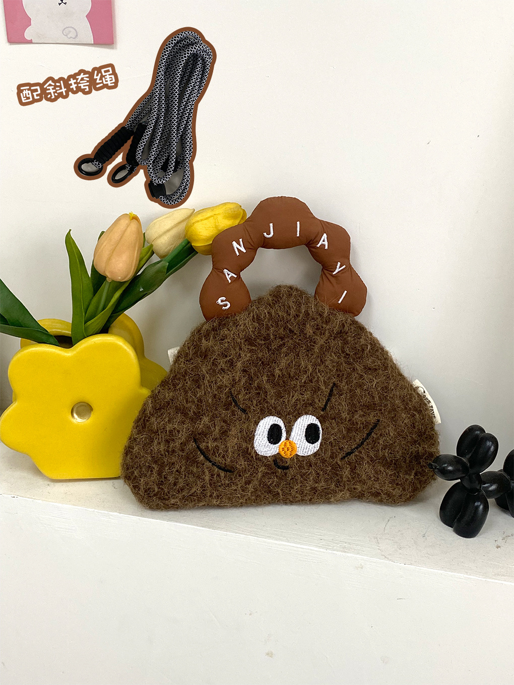 • 만화 휴대폰 가방 - 갈색 크로와상