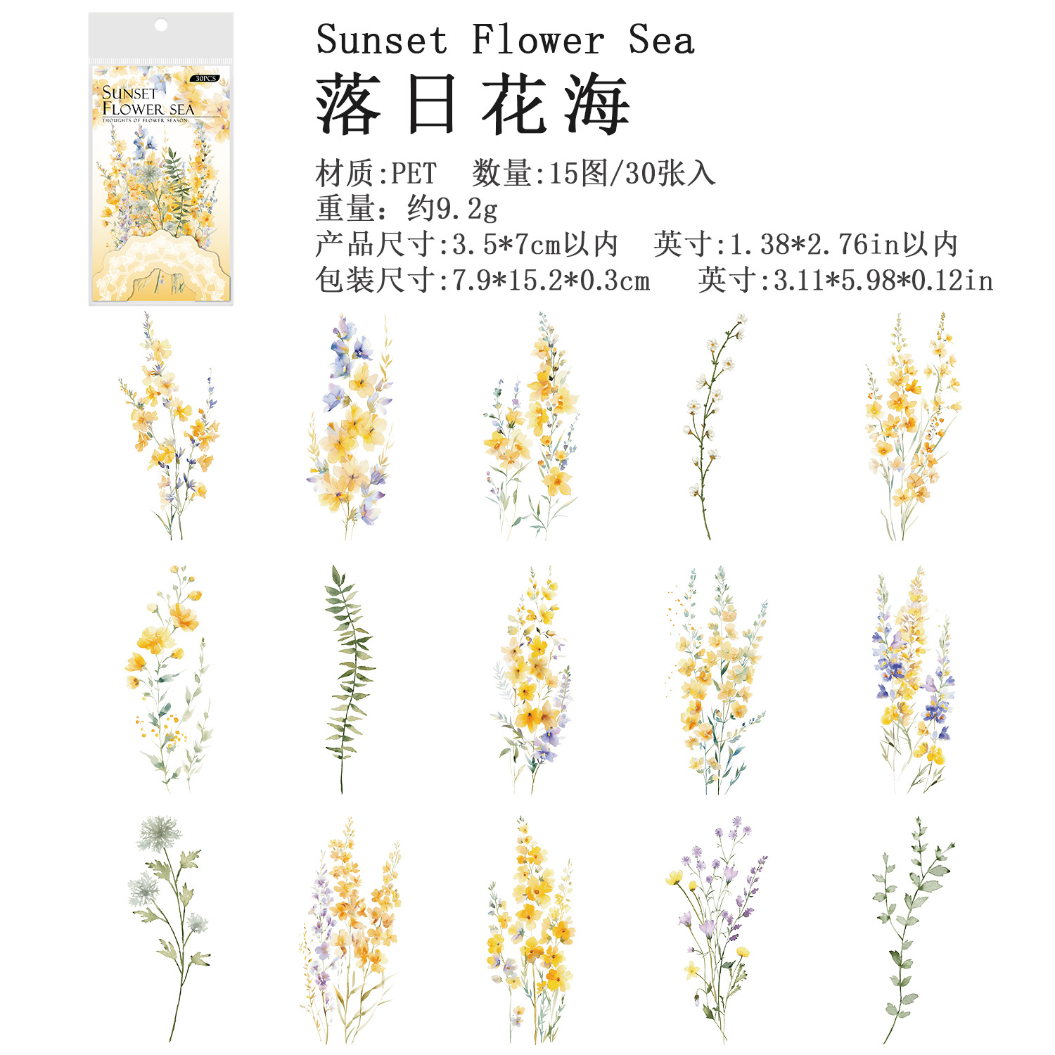 고대 숲 애완 동물 스티커 팩 꽃이 만발한 시리즈 복고풍 긴 손 계정 꽃 소재 30