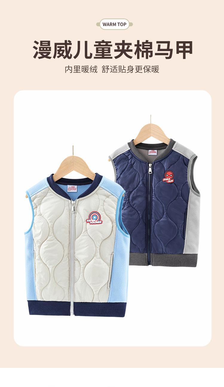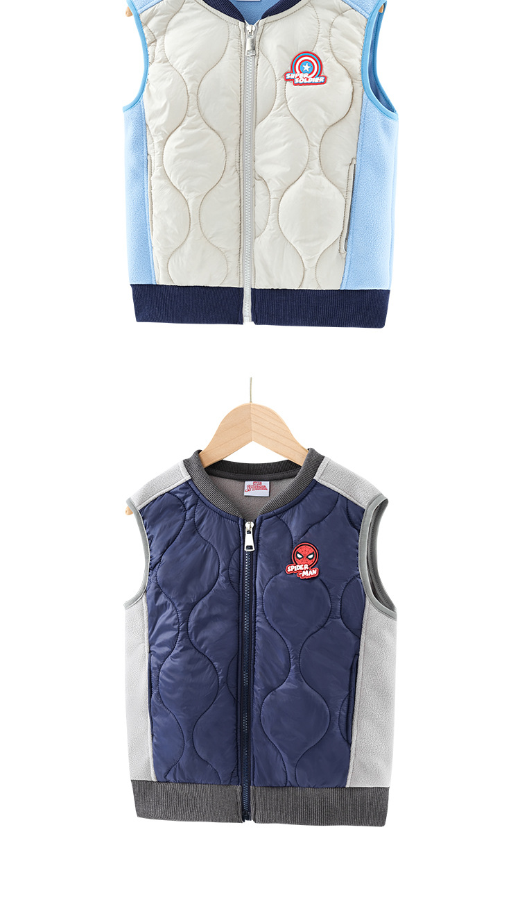 마블 스파이더 맨 어린이 면화 조끼 가을과 겨울 따뜻한 소년 조끼 중형 및 대형 어린이 얇은 벨벳 라이너 따뜻한 허리 코트