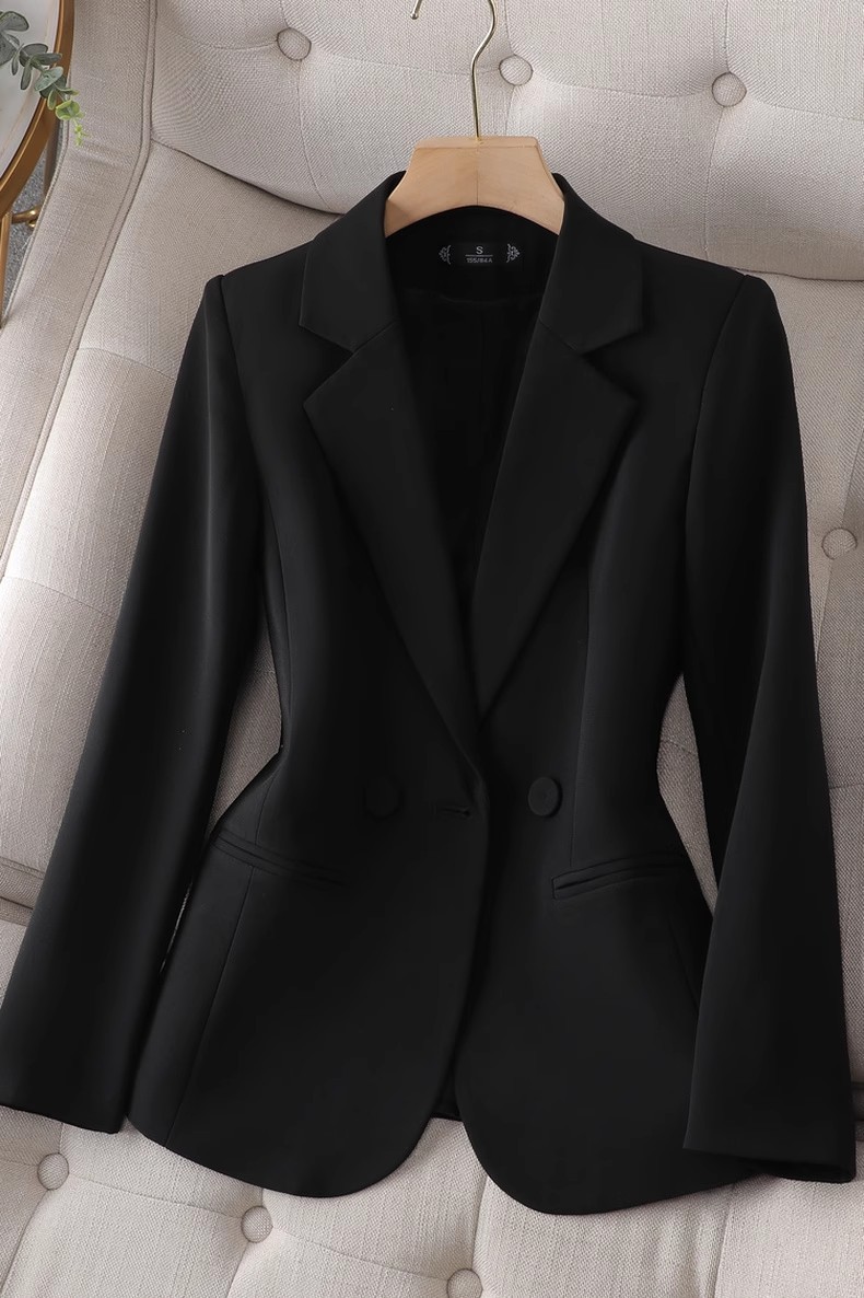 여성용 블랙 블레이저, 봄/가을용, 짧은 기장, 슬림핏, 허리라인 강조, 오피스룩/캐주얼룩 겸용스토어 가기