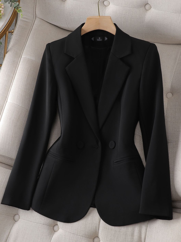 여성용 블랙 블레이저, 봄/가을용, 짧은 기장, 슬림핏, 허리라인 강조, 오피스룩/캐주얼룩 겸용